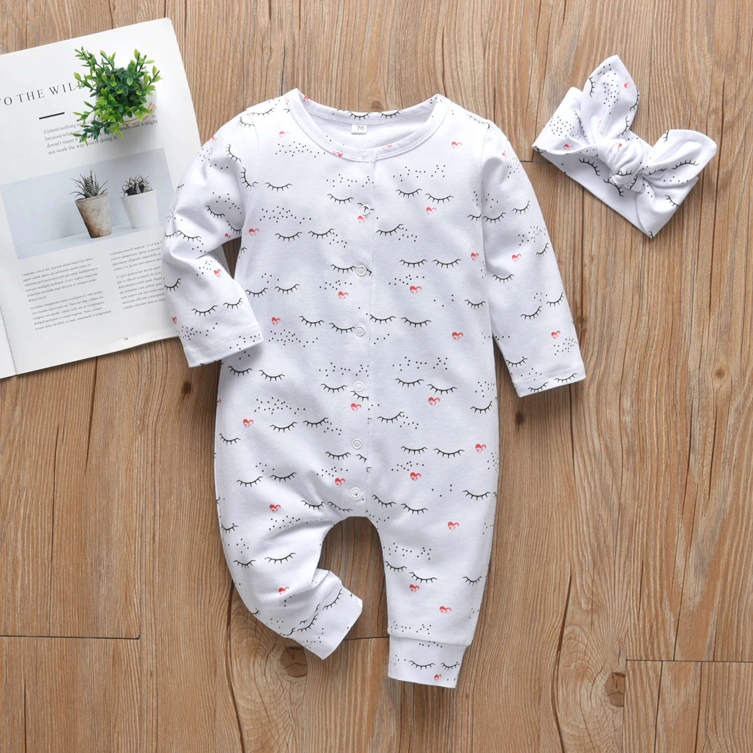 0-18month Newborn Infant Baby Girls 2pcs Clothes Fashion Cotton Long Sleeve Romper Jumpsuit with Headband Toddler Baby Clothing 2