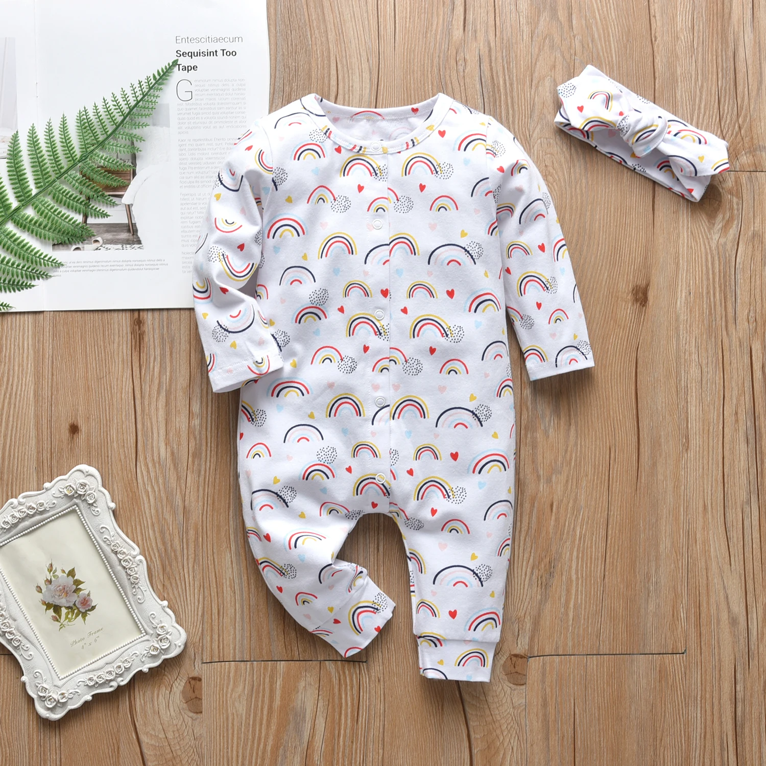 0-18month Newborn Infant Baby Girls 2pcs Clothes Fashion Cotton Long Sleeve Romper Jumpsuit with Headband Toddler Baby Clothing 5
