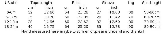 Size:0-6m,6-12m,12-18m,18-24m.