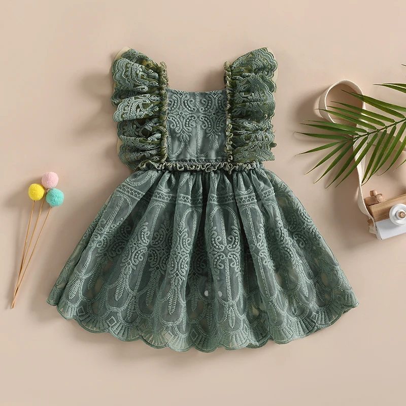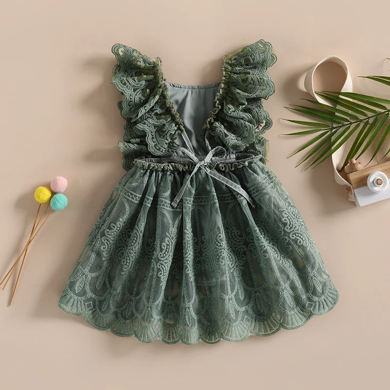 Baby Girl Summer Lace Romper, Ruffle Sleeve Backless Solid Color Infant Romper Dress