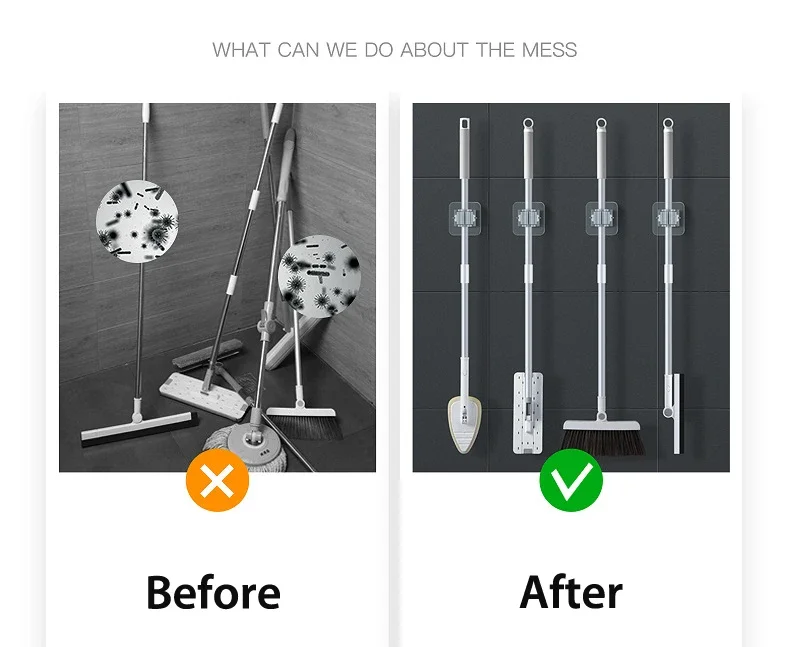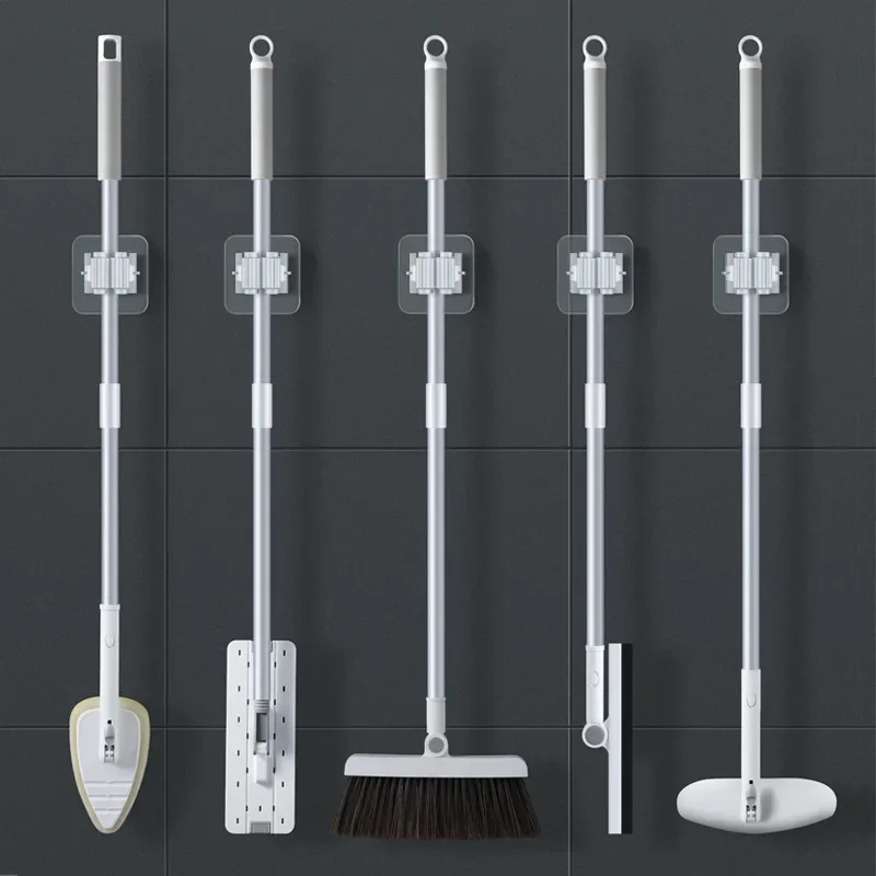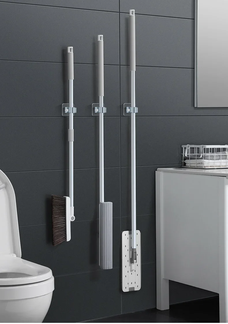 1/2pcs Bathroom Storage Rack Mop Holder Wall Mounted Organizer Broom Hanger Mop Clip Wall Hanging Mop Rack Self Adhesive Hooks