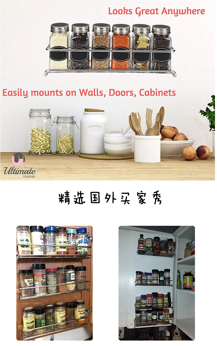 1/2PCS Wall Mount Spice Rack Metal Spice Storage Rack Spice Jar Rack Cabinet Shelf Seasoning Organizer Rack Kitchen Organizer 4