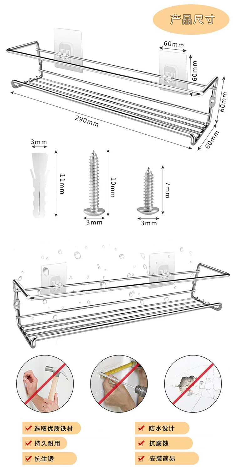 1/2PCS Wall Mount Spice Rack Metal Spice Storage Rack Spice Jar Rack Cabinet Shelf Seasoning Organizer Rack Kitchen Organizer 3