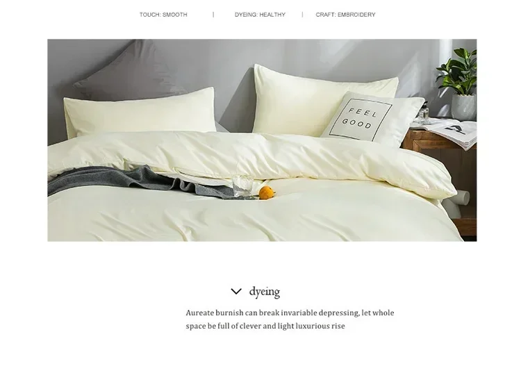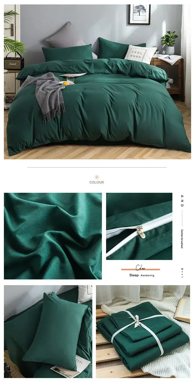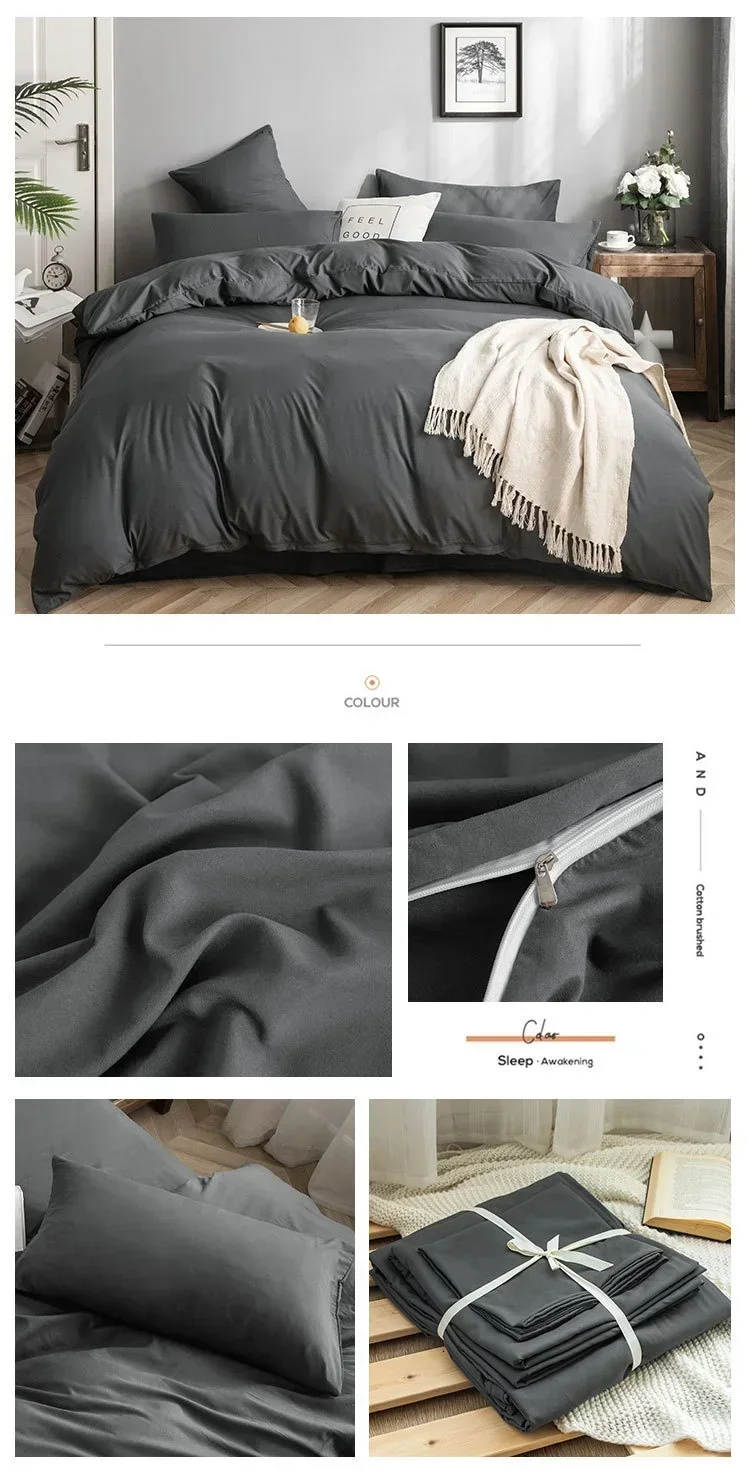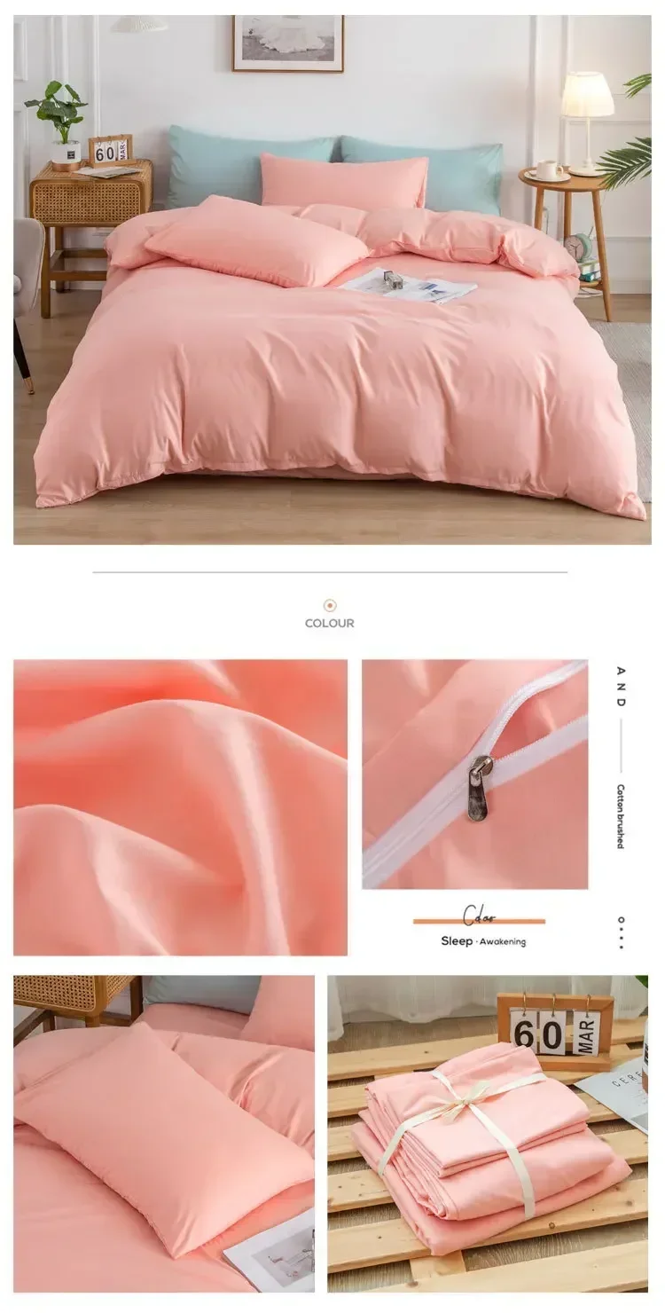 100% Cotton Bedding Set,Twin Size Duvet Cover 200x200,Skin Friendly Breathable,2 Pillowcase,No Bed Sheet,Solid Color 4