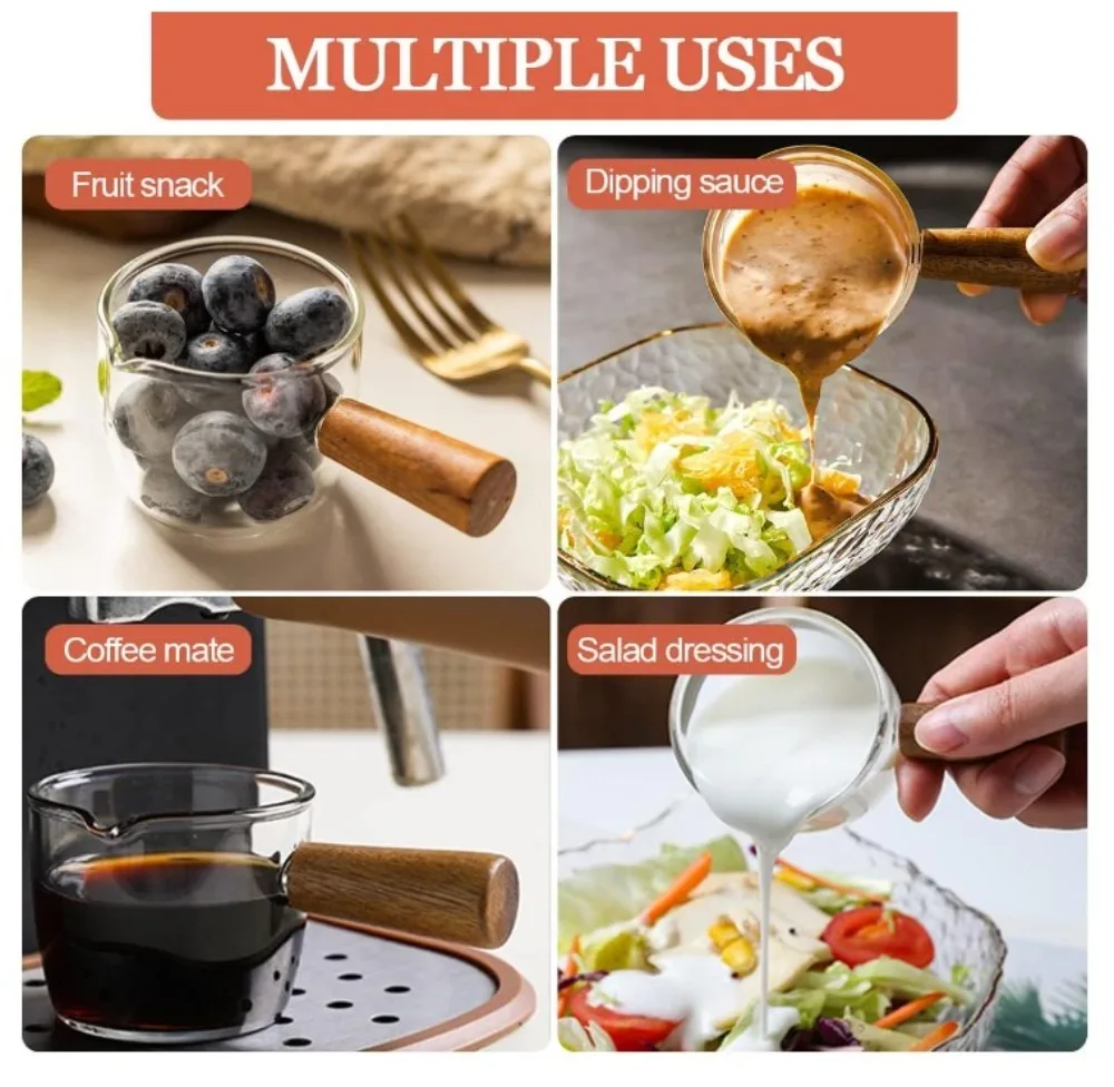 ☕High Quality Material: Our wooden handled coffee cup measuring cups are made of high quality borosilicate glass and wood, which is harder, sturdier and more heat-resistant, and can stay with you for a long time.