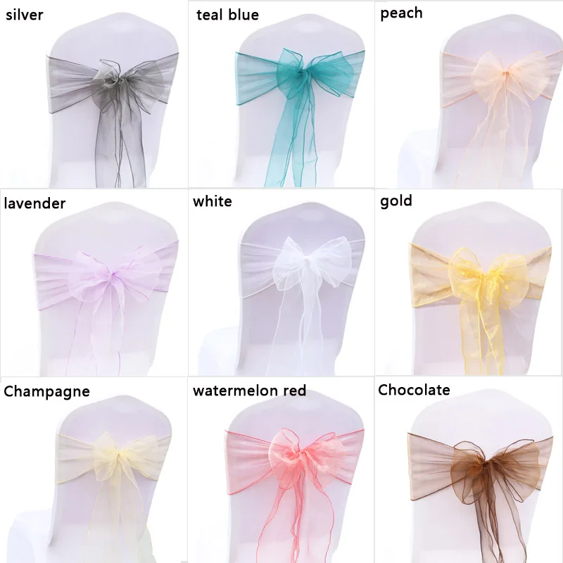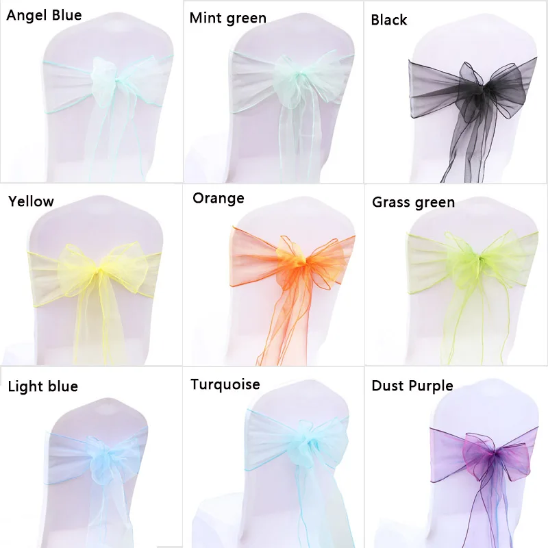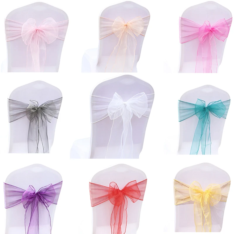 100Pcs Organza Chair Sashes Chair Bows Sashes Tie Back Wedding Events Banquets Chairs Decoration 18x275cm