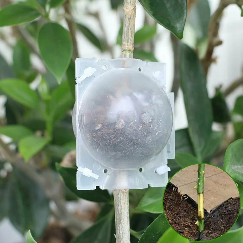Designed with stoppers and corner locks which interlock with each other and secure on the branch to hold the propagator in place even without a stem underneath.