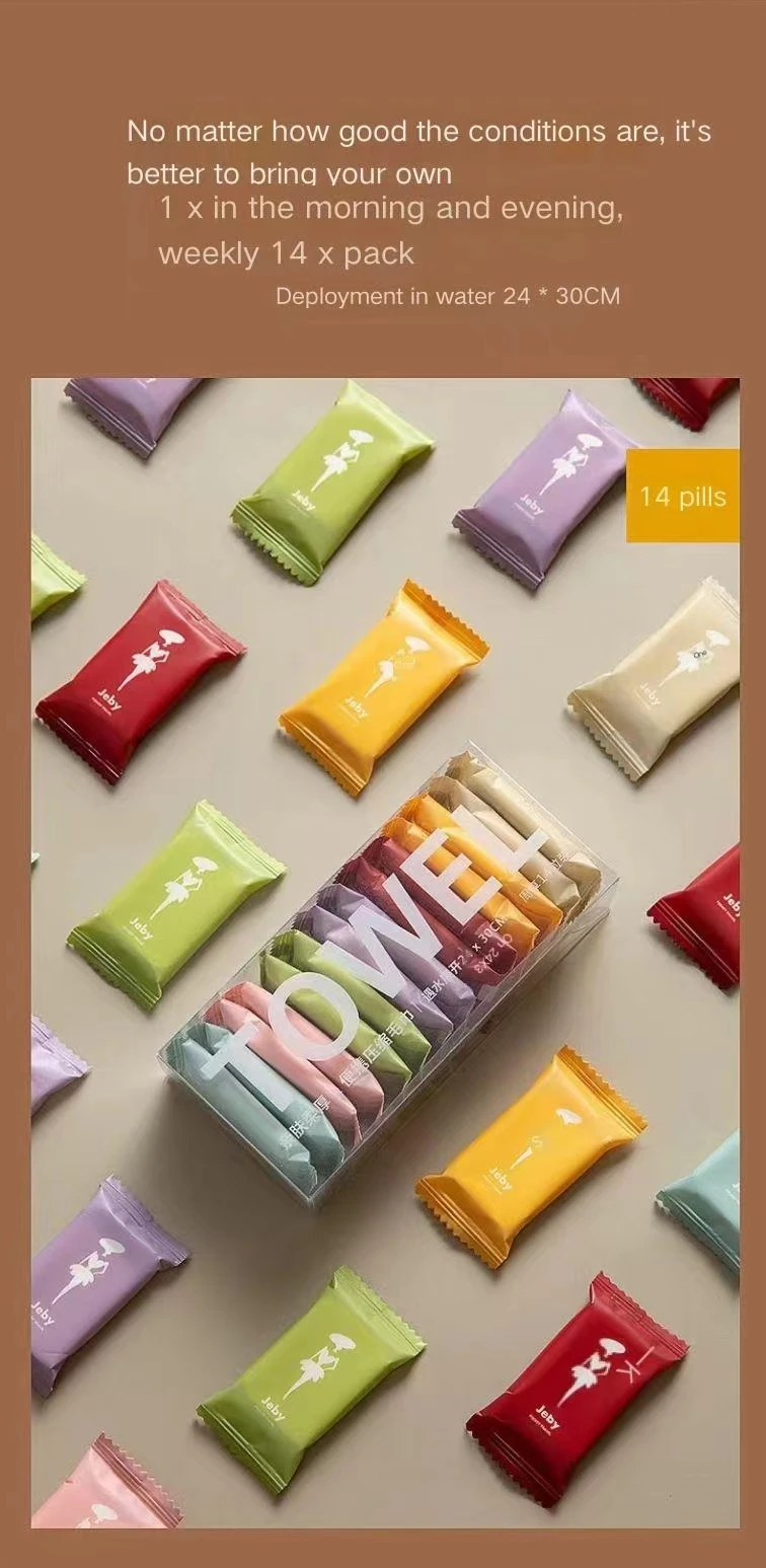 14pcs/box Disposable Washcloth Portable Travel Towel Thickened Compressed Face Cleansing Beauty Square Towel 6