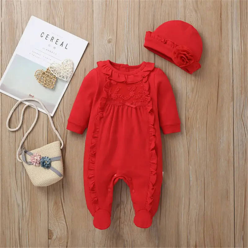 2019 Baby Spring Autumn Clothing Newborn Infant Girl Floral Romper Baby Jumpsuit Hat 2Pcs Outfits Long Sleeve Clothes