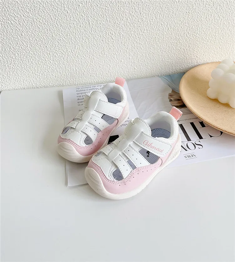 2023 New Summer Baby Shoes Leather Cut-outs Girls Sandals Soft Sole Closed Toe Little Kids Shoes Fashion Toddler Sandals 2