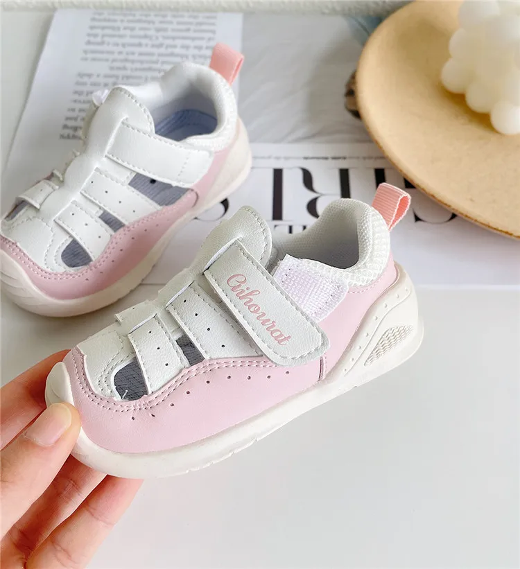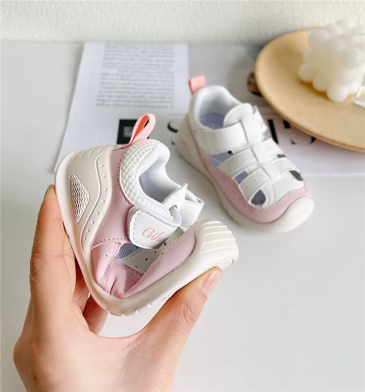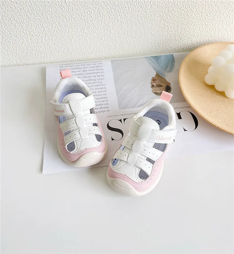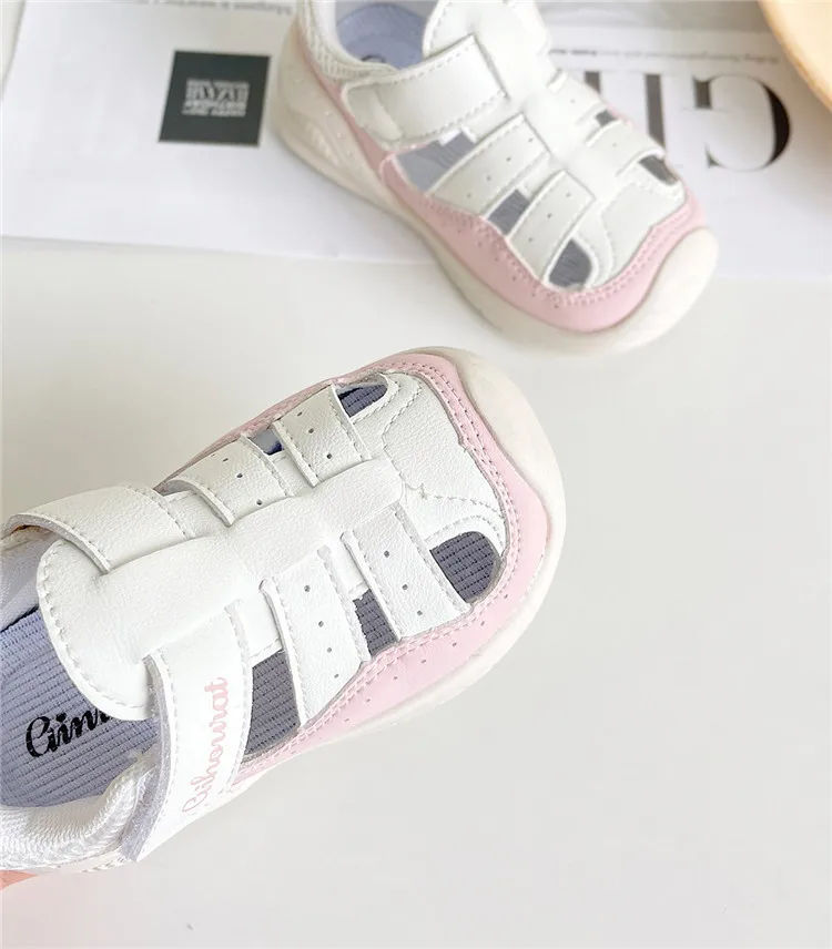 Home Babies & Kids Baby Shoes Sandals 2023 New Summer Baby Shoes Leather Cut-outs Girls Sandals Soft Sole Closed Toe Little Kids Shoes Fashion Toddler Sandals