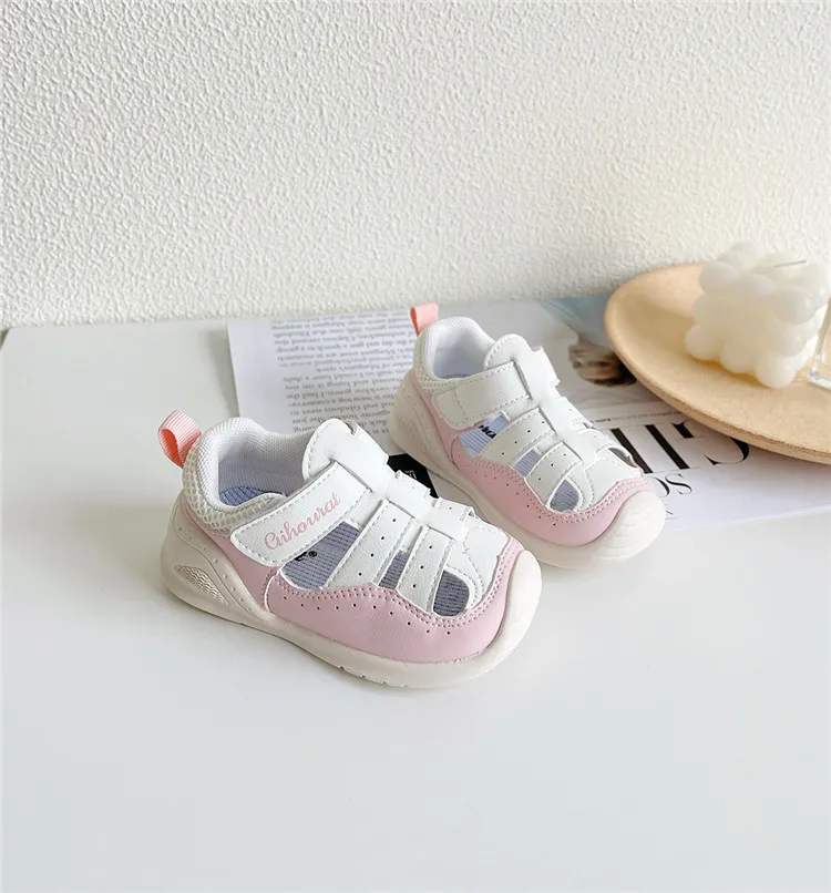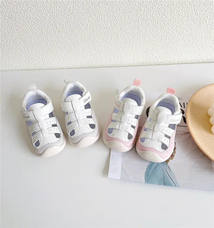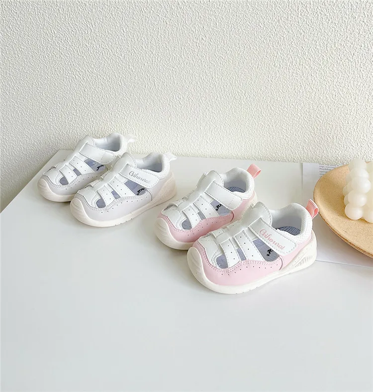 2023 New Summer Baby Shoes Leather Cut-outs Girls Sandals Soft Sole Closed Toe Little Kids Shoes Fashion Toddler Sandals 5
