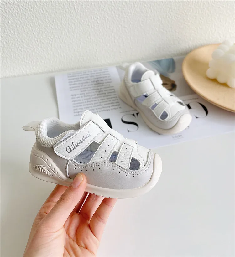 2023 New Summer Baby Shoes Leather Cut-outs Girls Sandals Soft Sole Closed Toe Little Kids Shoes Fashion Toddler Sandals