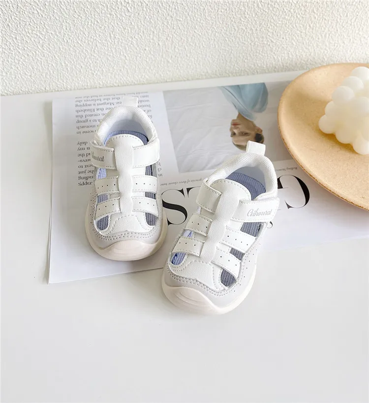 2023 New Summer Baby Shoes Leather Cut-outs Girls Sandals Soft Sole Closed Toe Little Kids Shoes Fashion Toddler Sandals 4