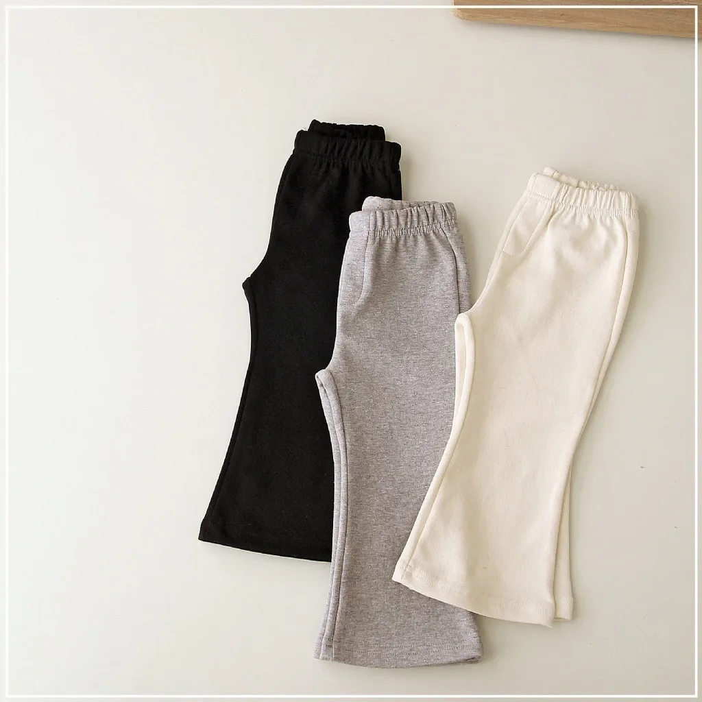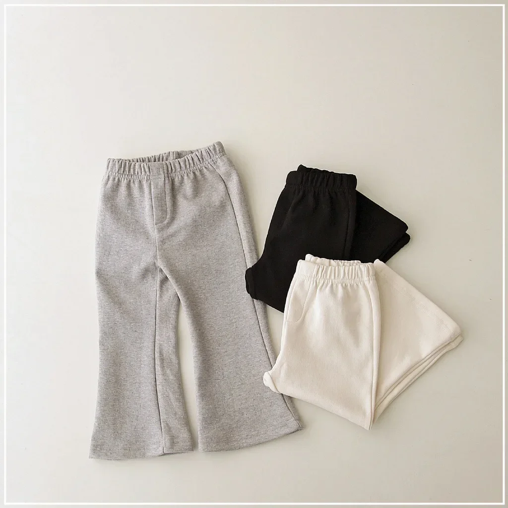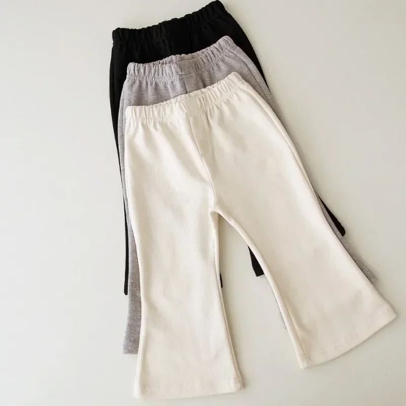 2024 New Baby Autumn Pants Girls Solid Color Elasticity Leggings Cotton Flared Trousers 1-6Y Kids Toddlers Spring Casual Clothes
