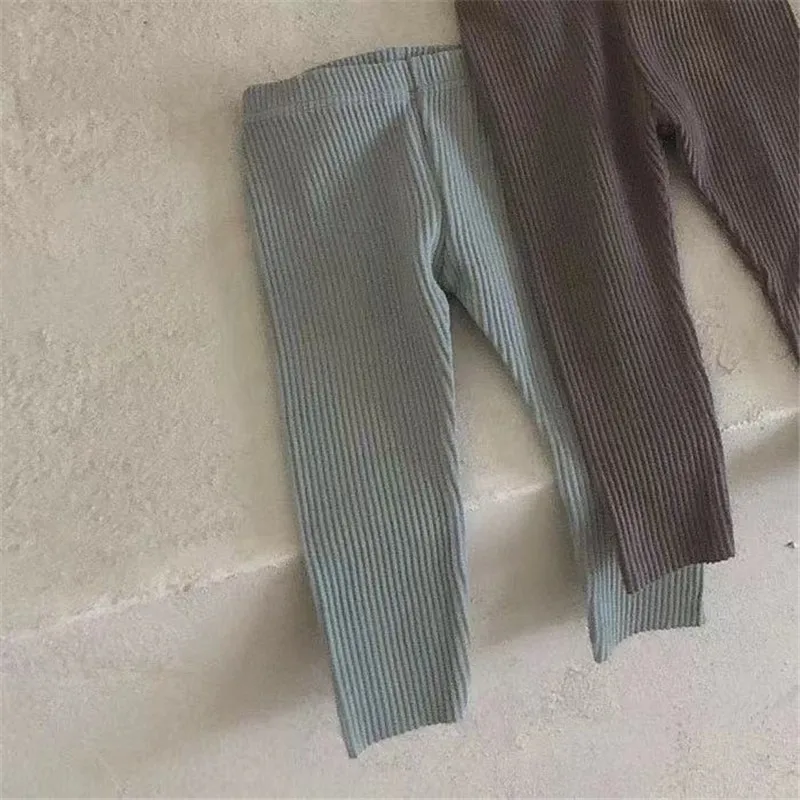 2024 New Baby Cotton Ribbed Leggings Solid Cotton Infant Stretch Pants Soft Comfortable Toddler Pants Kids Boys Girls Trousers 2