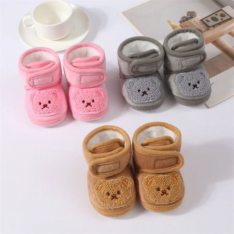 Home Babies & Kids Baby Shoes Casual Shoes 2024 New Baby Cute Shoes Children Soft Soled Walking Shoes Autumn Winter Cartoon Bear Newborn Infant Cotton Boots First Walkers