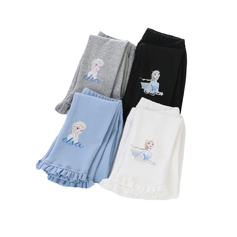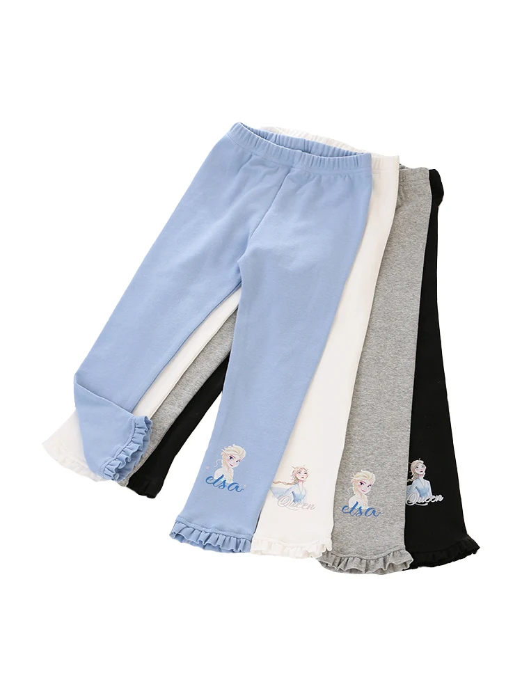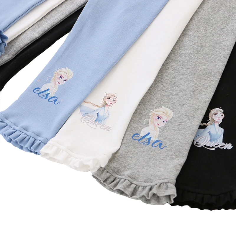 2024 New Disney Girl Pants Quality Cotton for Children Frozen Anna Elsa Autumn Baby Girl Pink Blue Trouser Kids Leggings Cartoon