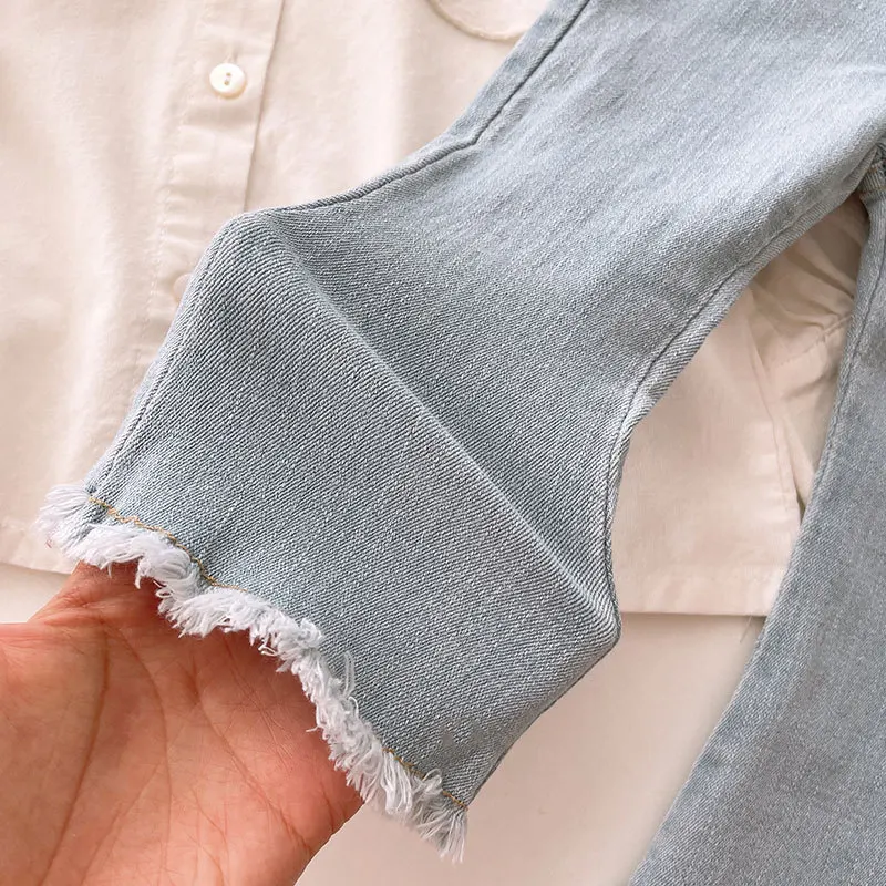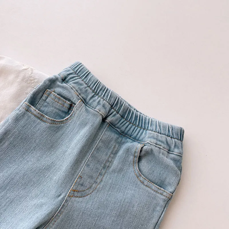 2024 New Girls Jeans Bell-bottoms Kids Pants Solid Color Baby Out Jeans For Children's Clothing Fashion Washing Water 2-8Y 4