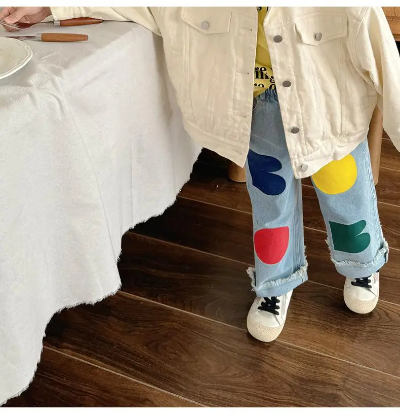 2024 Spring New Children Loose Jeans Baby Girl Color Printing Casual Pants Toddler Boy Harem Pants Kids Versatile Denim Trousers 4