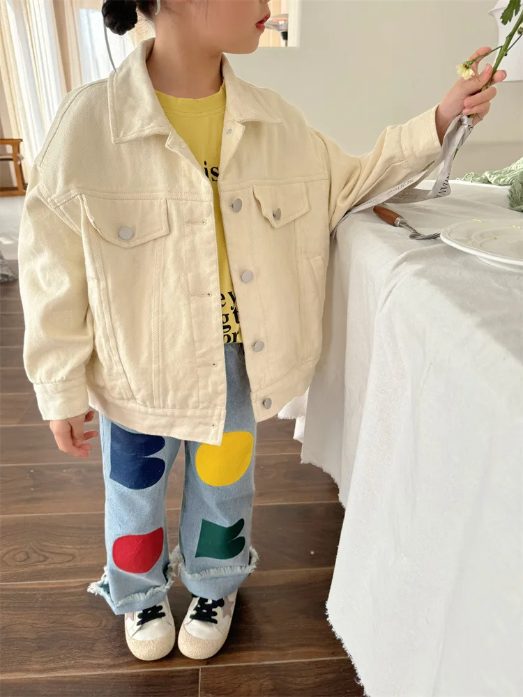 2024 Spring New Children Loose Jeans Baby Girl Color Printing Casual Pants Toddler Boy Harem Pants Kids Versatile Denim Trousers 5