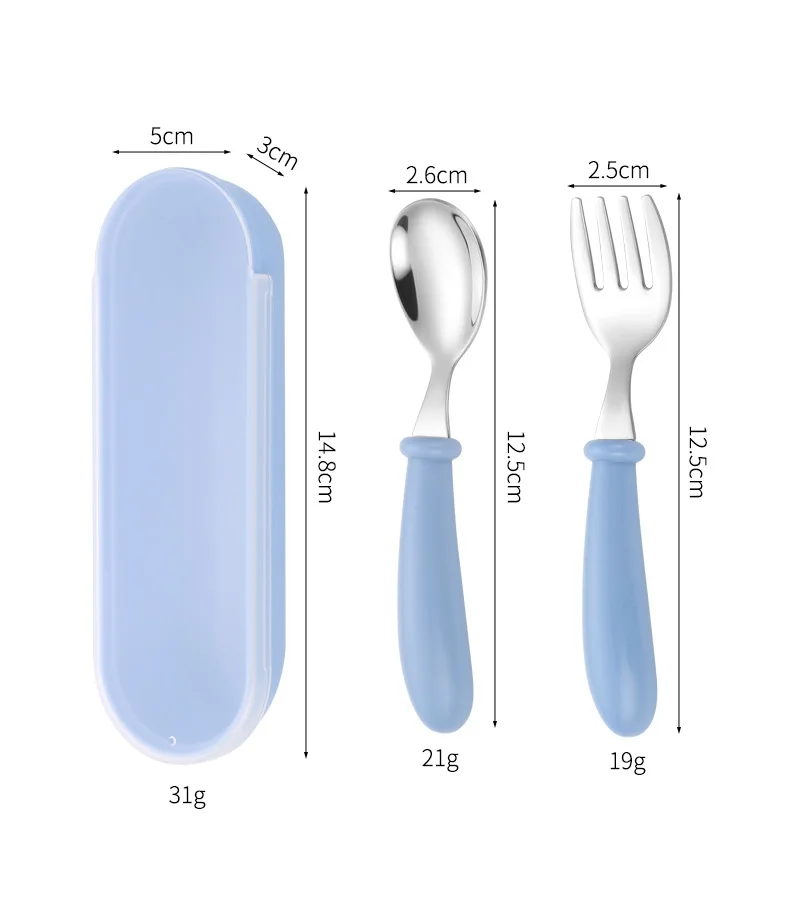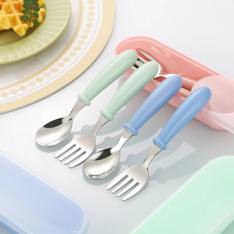 2pcs 304 Stainless Steel Spoon and Fork Set Kidsren’s Portable Cutlery Box