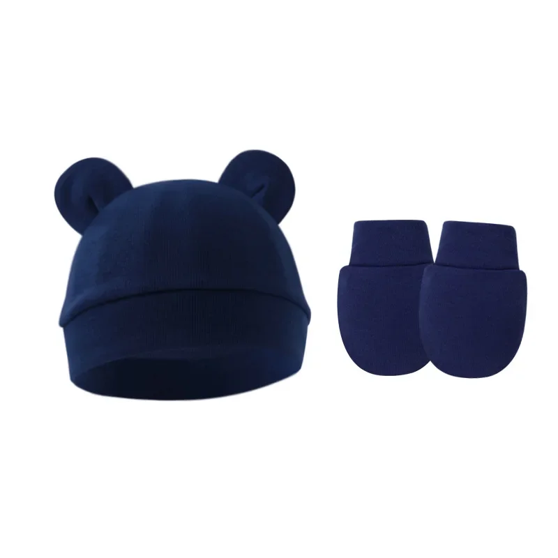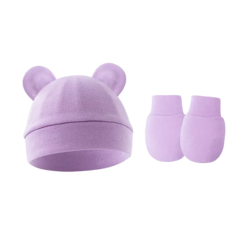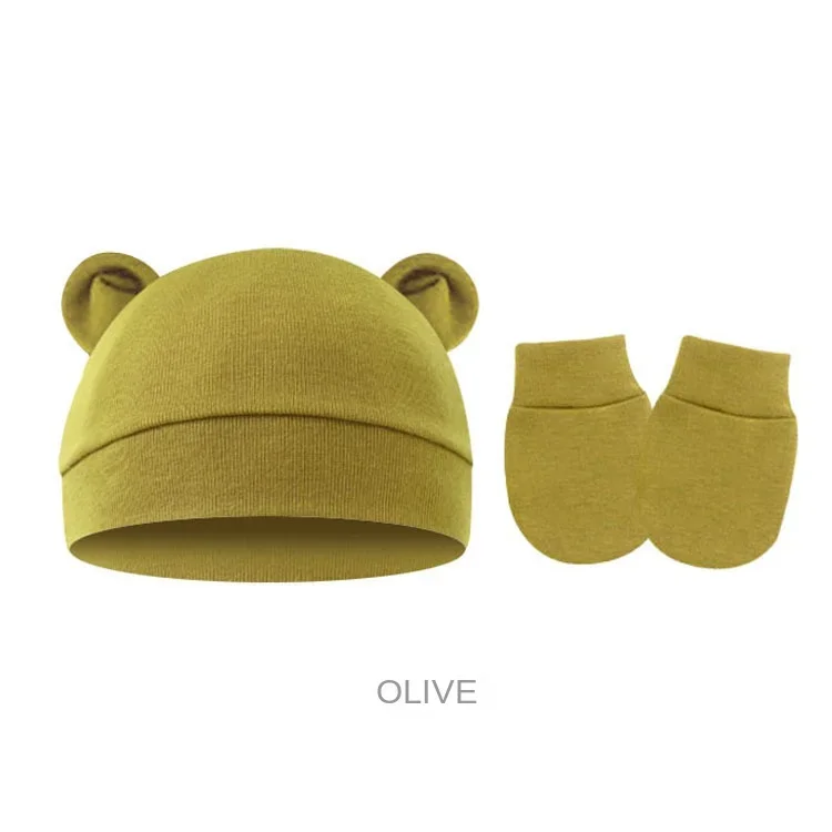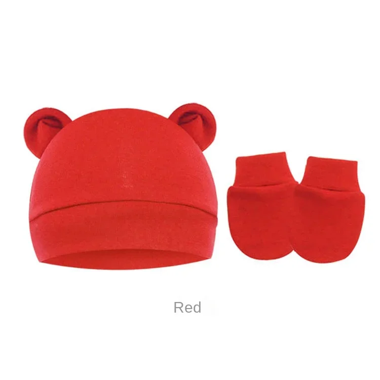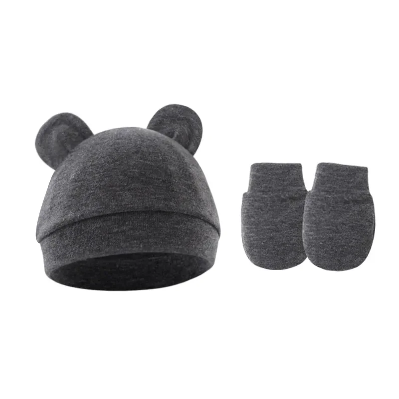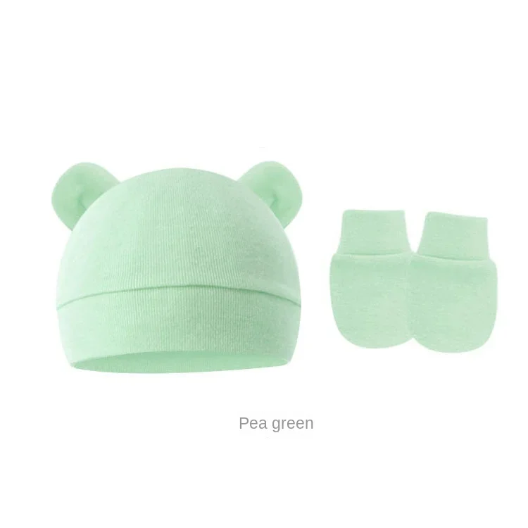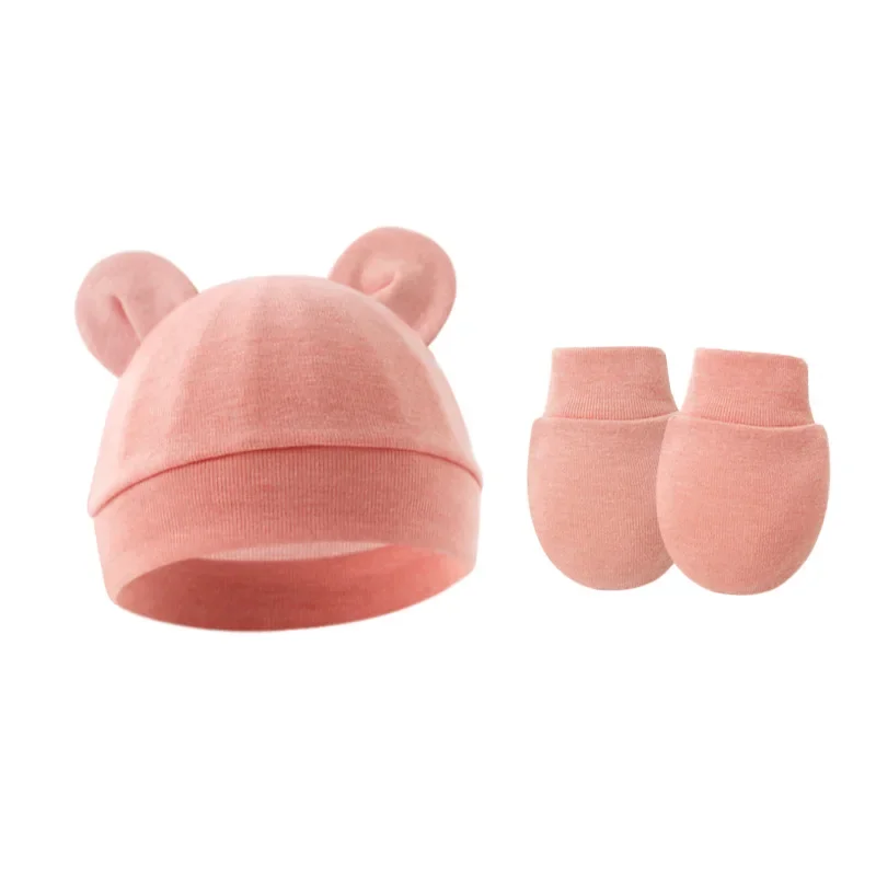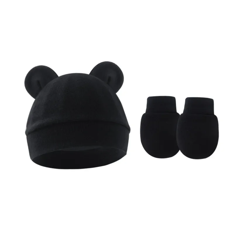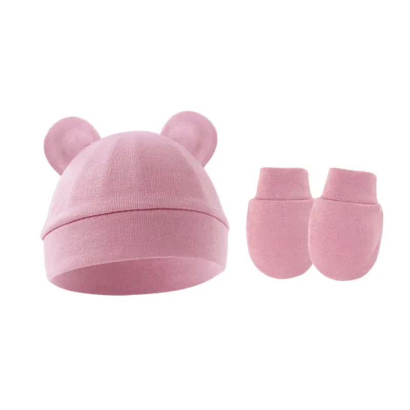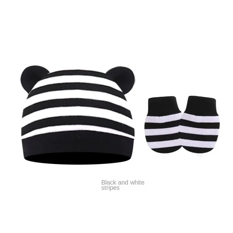 2pcs Baby Pullover Hat Mickey Ears Baby Hat Newborn Tire Cap Anti-scratch Gloves