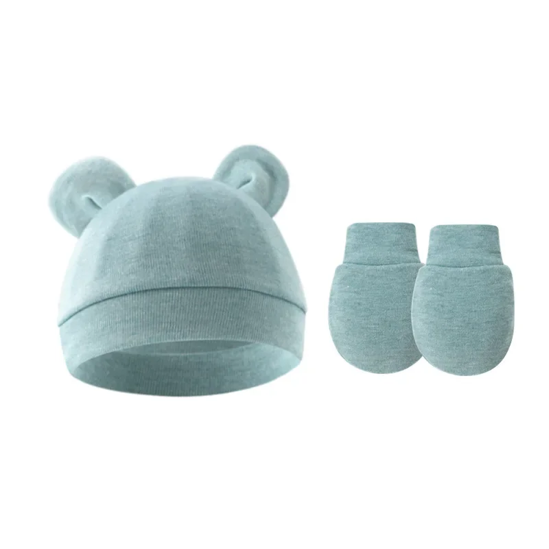 Baby Infants Anti Scratching Cotton Gloves+Hat Set Newborn Face Protection Scratch Mittens Warm Cap Kit