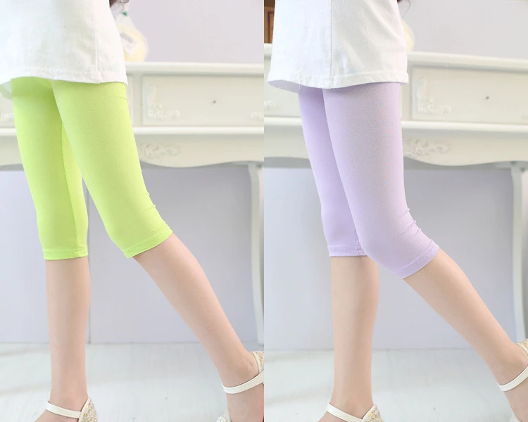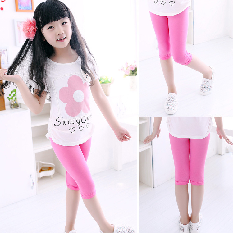 3-10years Girls Knee Length Kid Fifth Pants Candy Color Children Cropped Clothing Spring-Summer All-matches Bottoms Leggings 1
