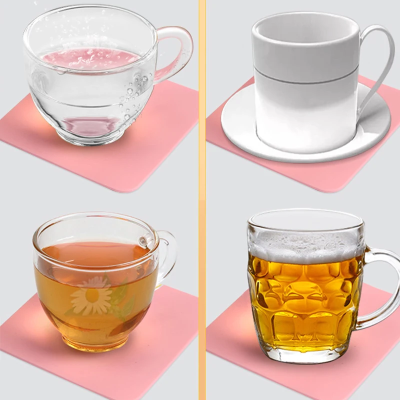 Modern soft and flexible coasters can hold extremely hot drinks like tea or coffee without any damaging effects to countertop surfaces. With size 3.9*3.9-inch to fit almost any variety of glassware, cups, and mugs.