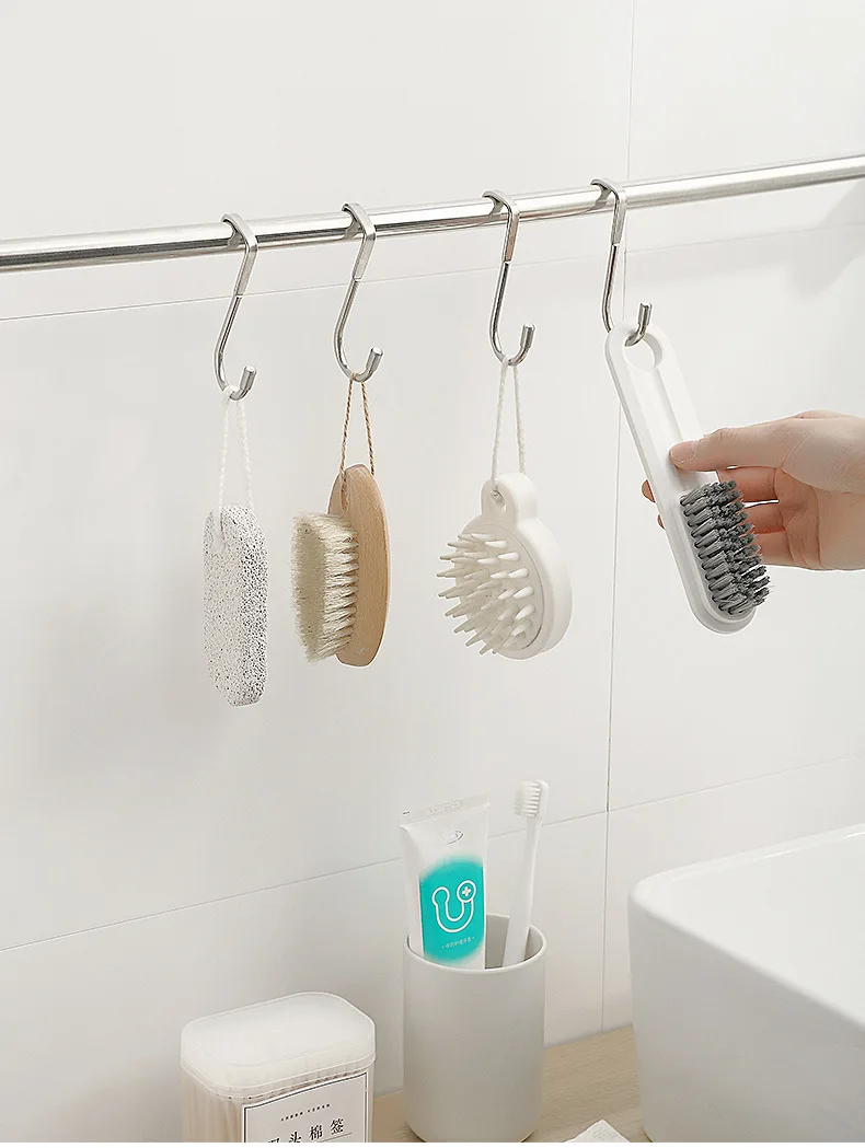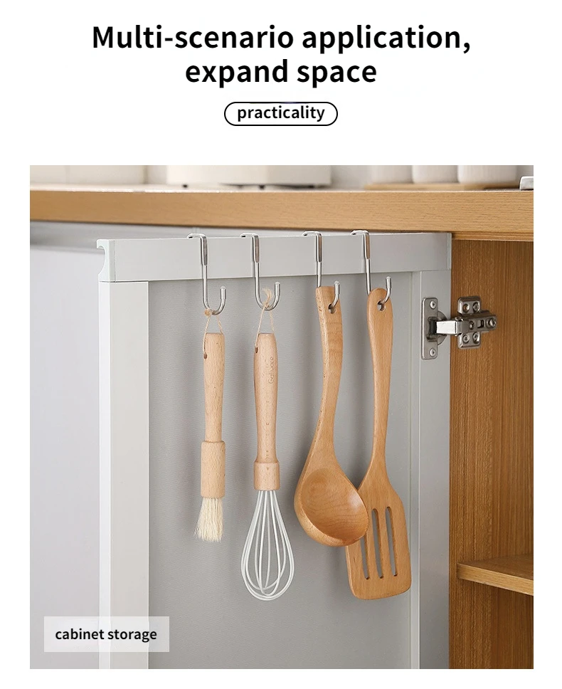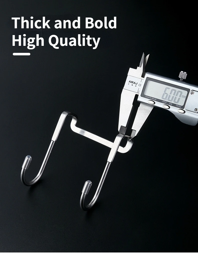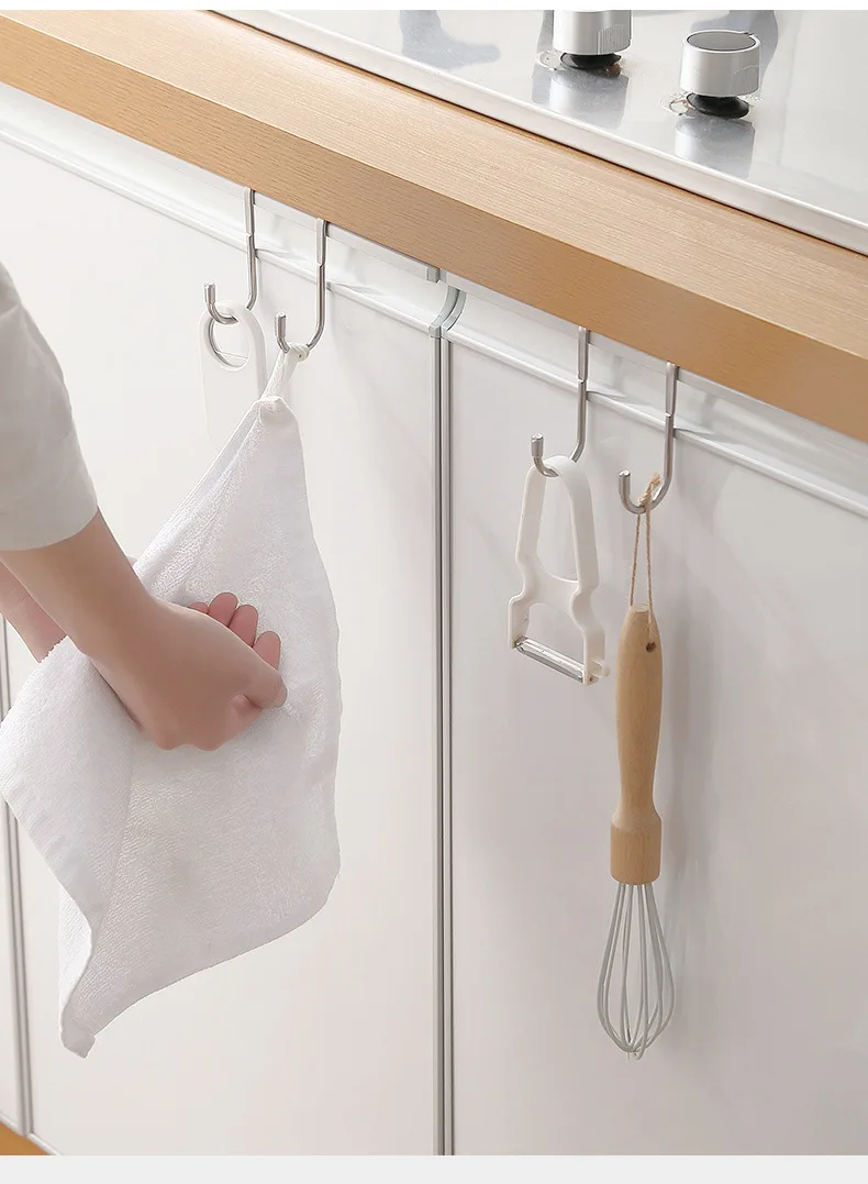 304 Stainless Steel Hook Free Punching Double  S-Shape Hook Kitchen Bathroom Cabinet Door Back Type Coat Towel Storage Hanger 4
