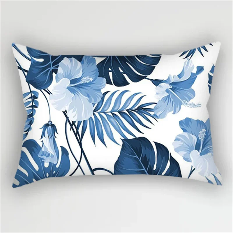 30x50cm Bohemian Blue Flower Pillowcase Vintage ink plant Leaf Cushion cover Home Decor Sofa Living Room Car Waist 1