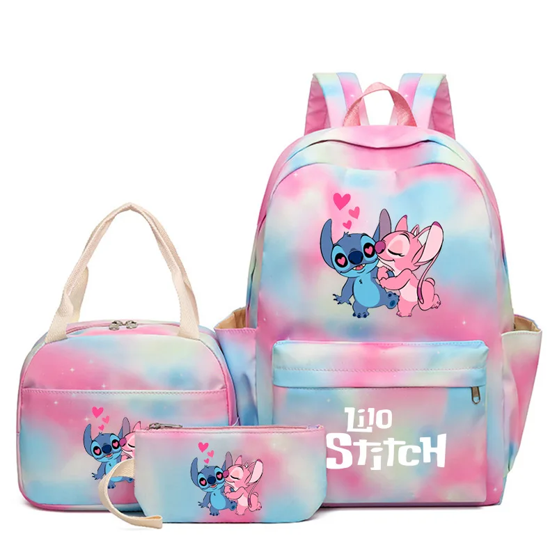 3Pcs/set Disney Lilo Stitch Colorful Backpack Children Teenager Cartoon School Bookbag with Lunch Bag Student Boy Girl Schoolbag