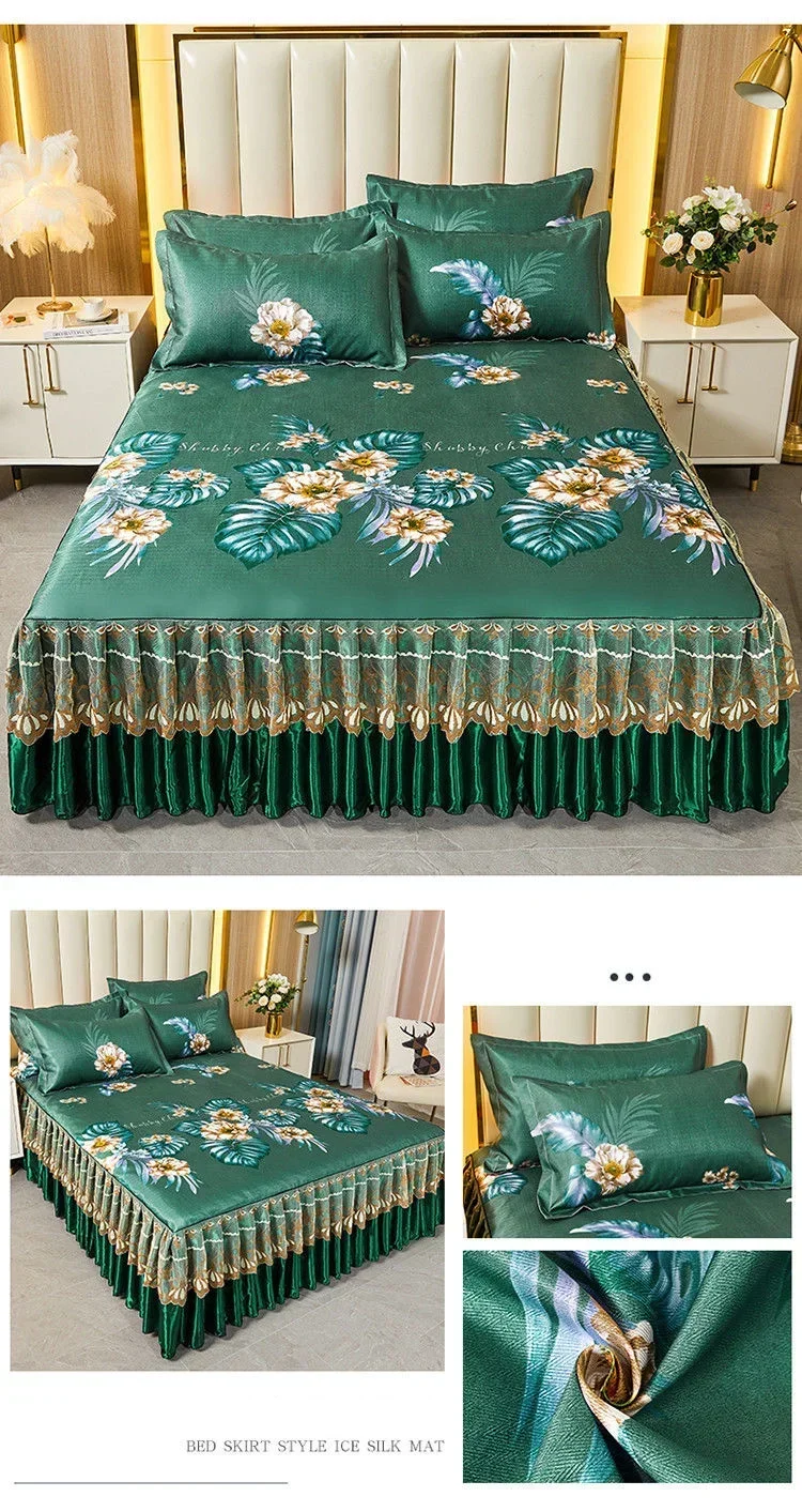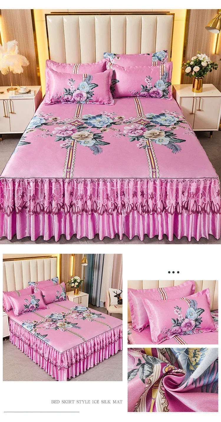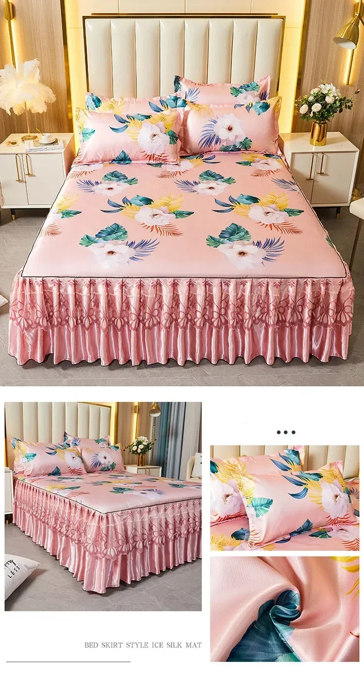 3Pcs Summer Bed Skirt Style Bedspread Lace European Style Three Piece Set Skirt Style Bed Cover Mattress Dust Protection Cover 1