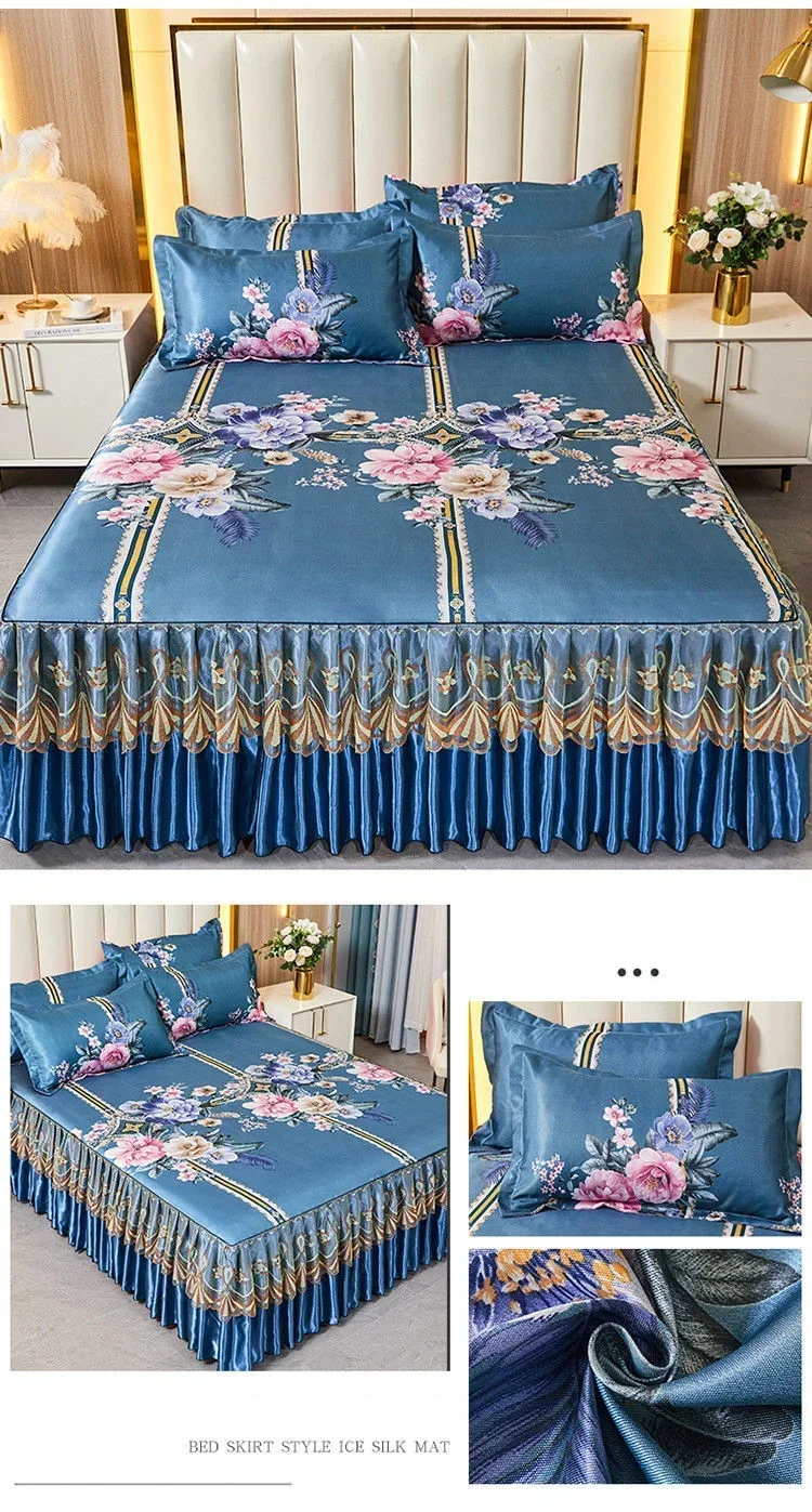 3Pcs Summer Bed Skirt Style Bedspread Lace European Style Three Piece Set Skirt Style Bed Cover Mattress Dust Protection Cover