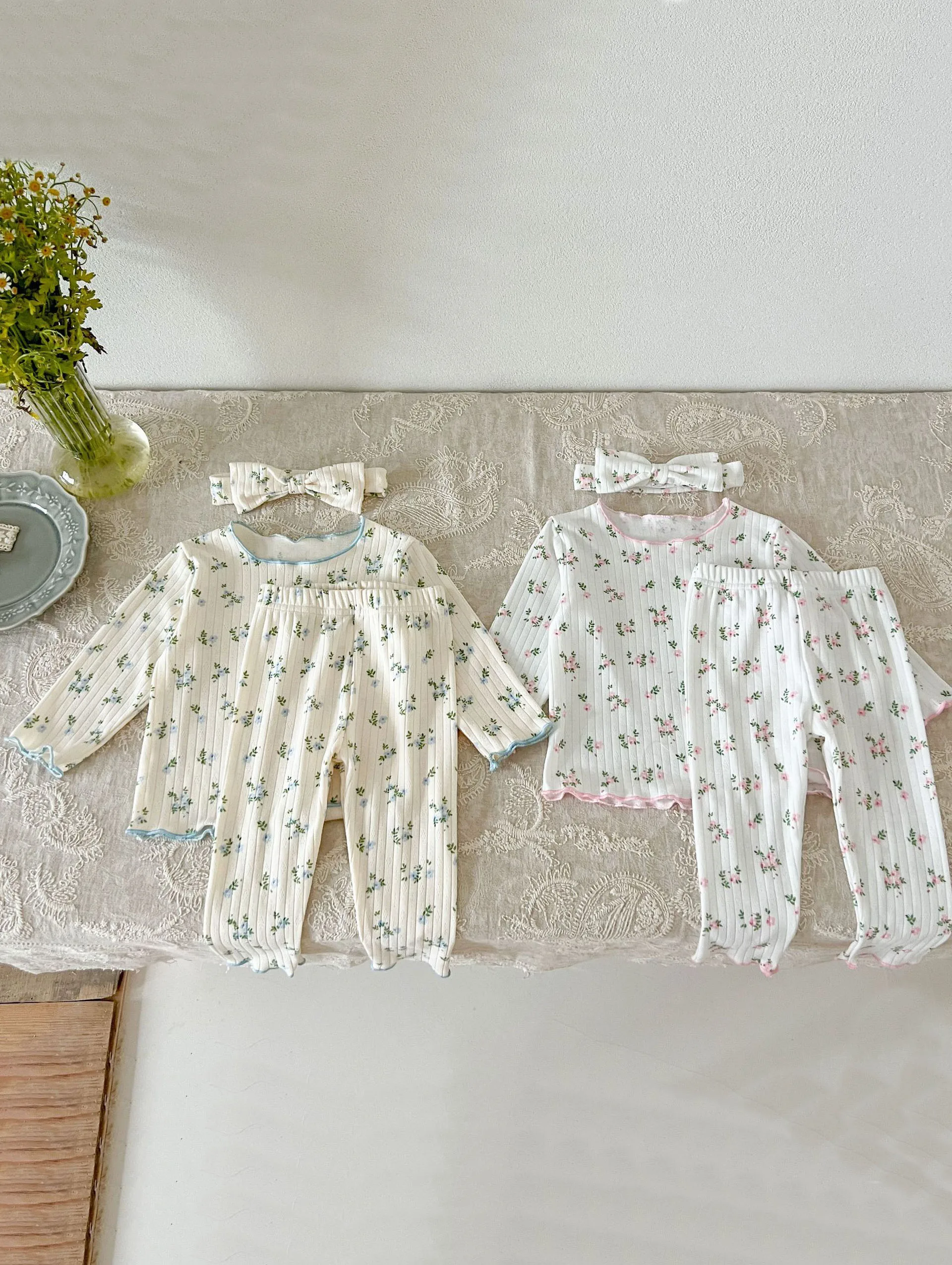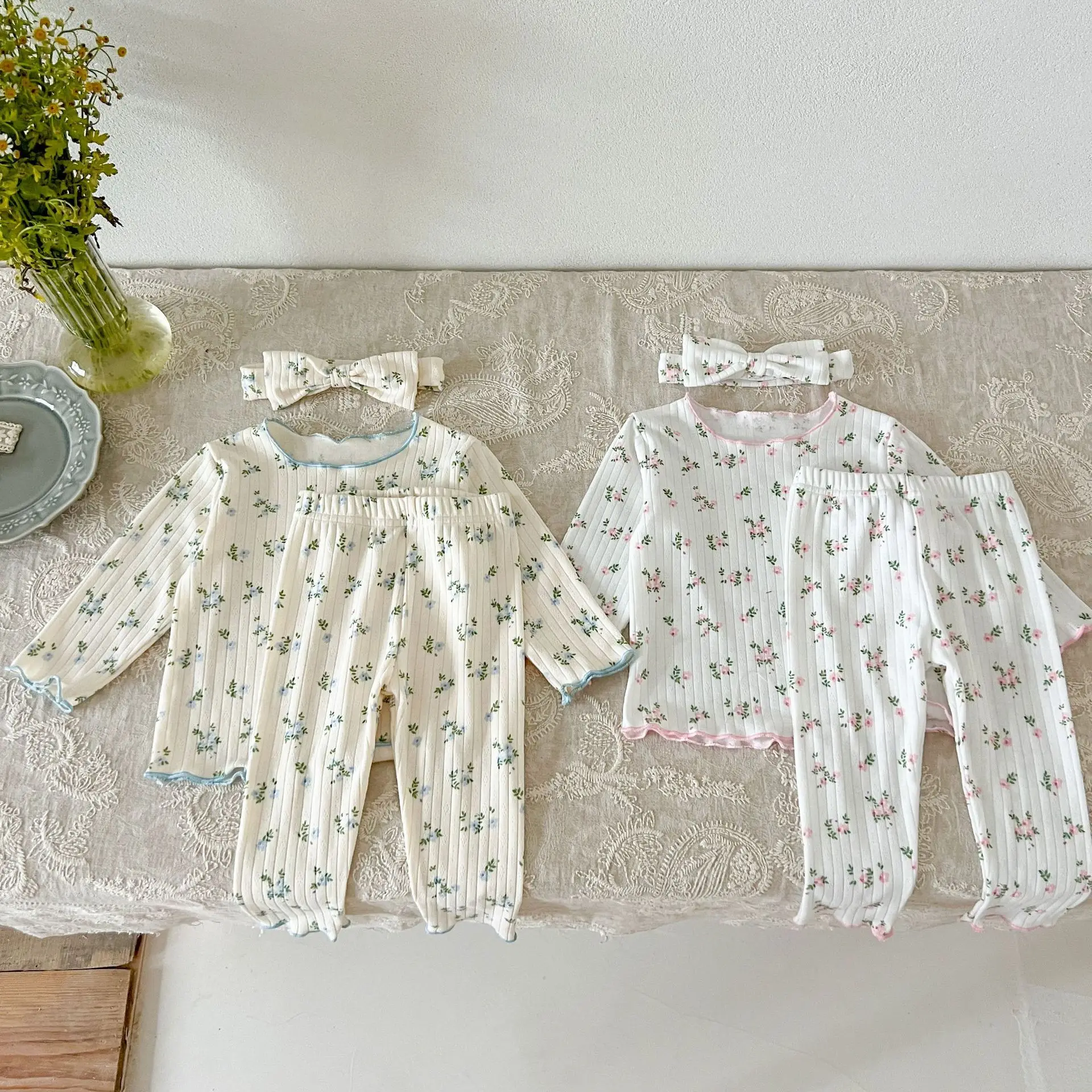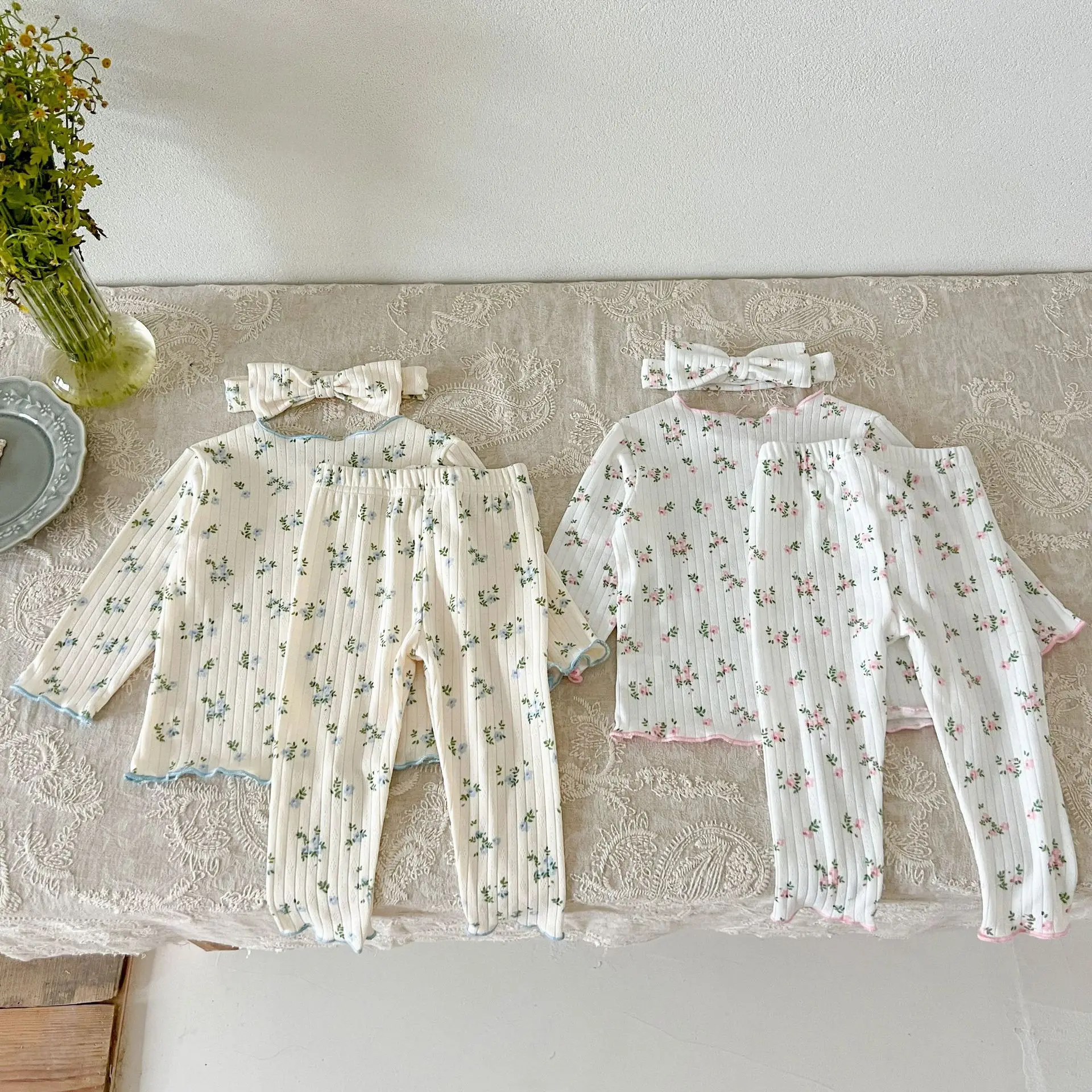 3psc Autumn Newborn Infant Baby Girls Flower T-Shirt + Trousers Headband Pajamas Comfort Set Muslin Kids Fashion Baby Clothing