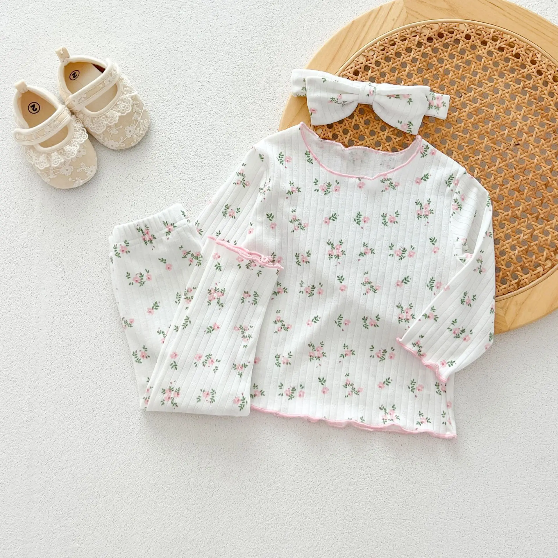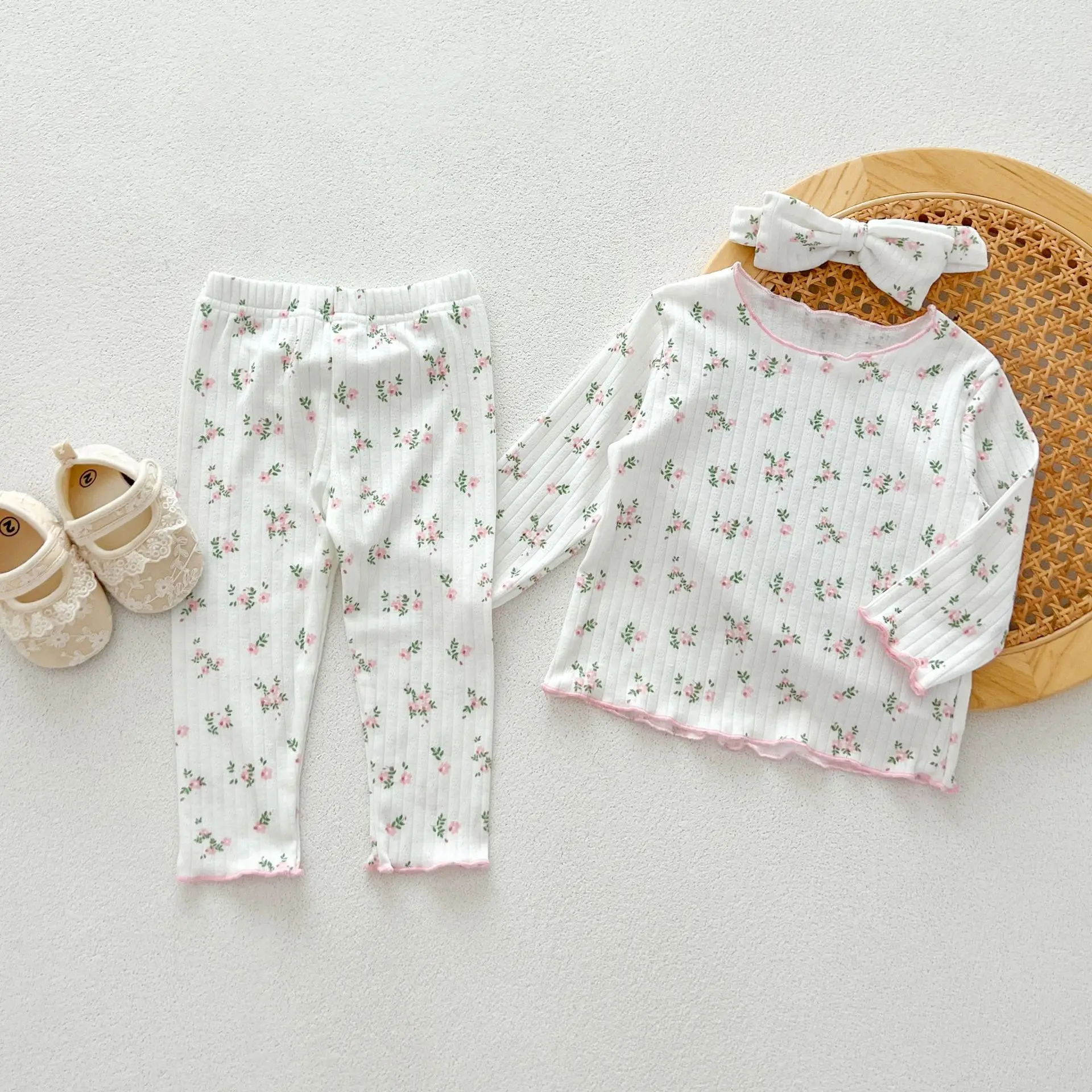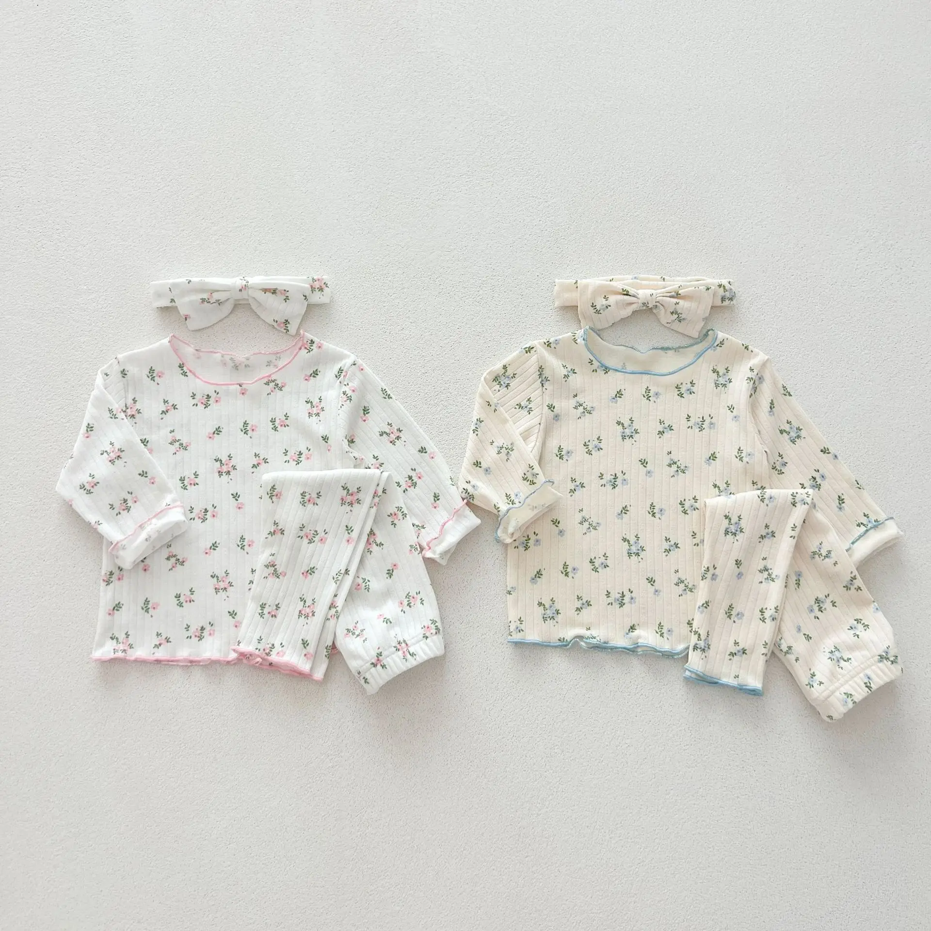 3psc Autumn Newborn Infant Baby Girls Flower T-Shirt + Trousers Headband Pajamas Comfort Set Muslin Kids Fashion Baby Clothing