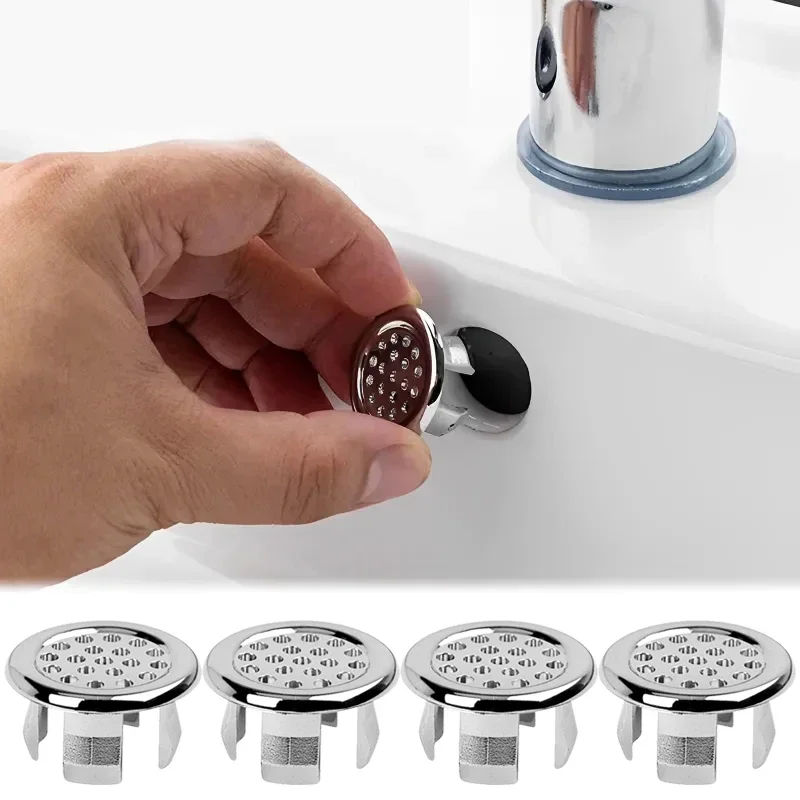 4PCS Plastic Bathroom Kitchen Basin Sink Overflow Cover Ring Insert Replacement Chrome Hole Round Drain Cap Drain Plug