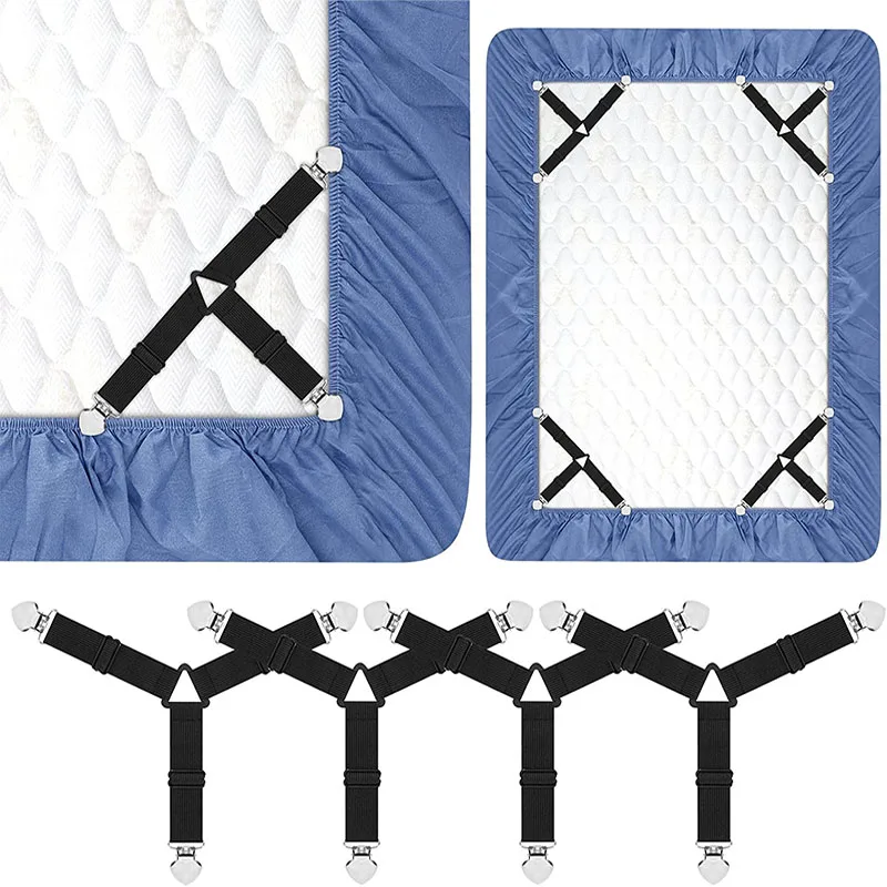 4pcs/set Elastic Bed Sheet Grippers Belt Fastener Bed Sheet Clips Mattress Cover Blankets Quilt Holder Textiles Organize Gadgets