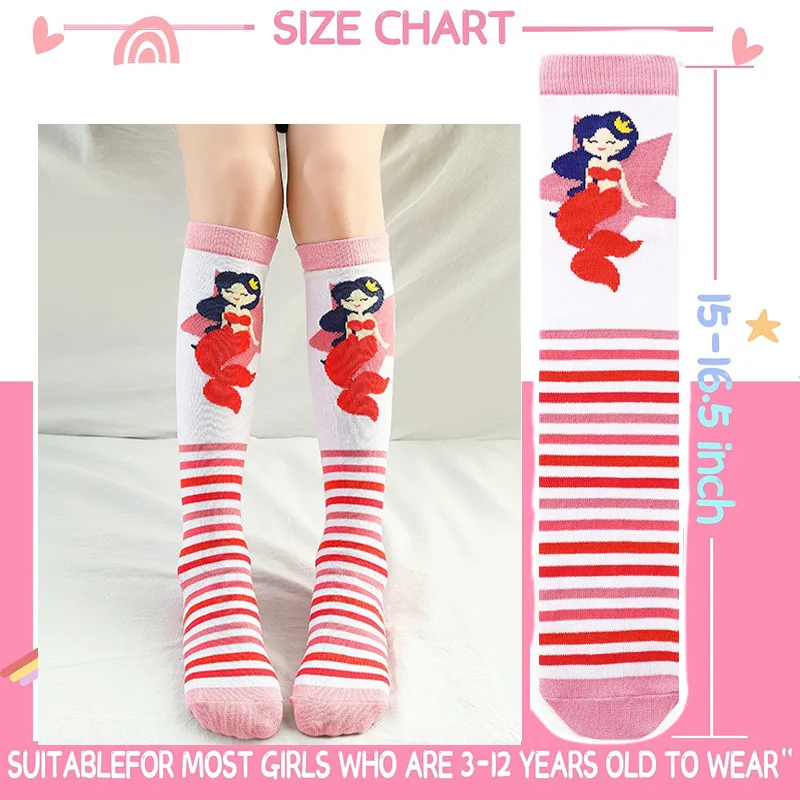 6Pairs/Lot 2-14Years Children Girls Socks Soft Cotton Toddler Leg Warmers Mermaids Cartoon Socks For Kids Knitted Girl Knee Sock 4