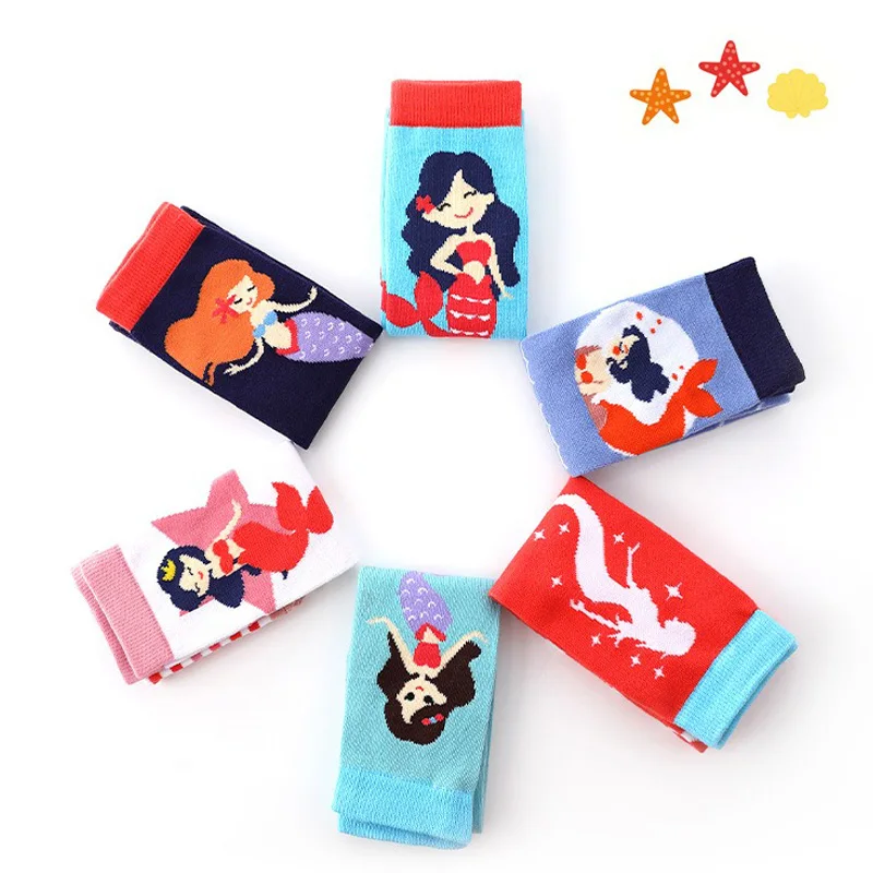6Pairs/Lot 2-14Years Children Girls Socks Soft Cotton Toddler Leg Warmers Mermaids Cartoon Socks For Kids Knitted Girl Knee Sock