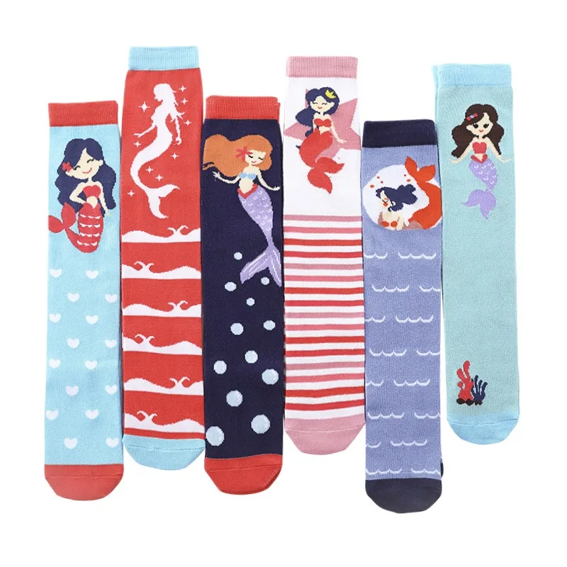 6Pairs/Lot 2-14Years Children Girls Socks Soft Cotton Toddler Leg Warmers Mermaids Cartoon Socks For Kids Knitted Girl Knee Sock 6