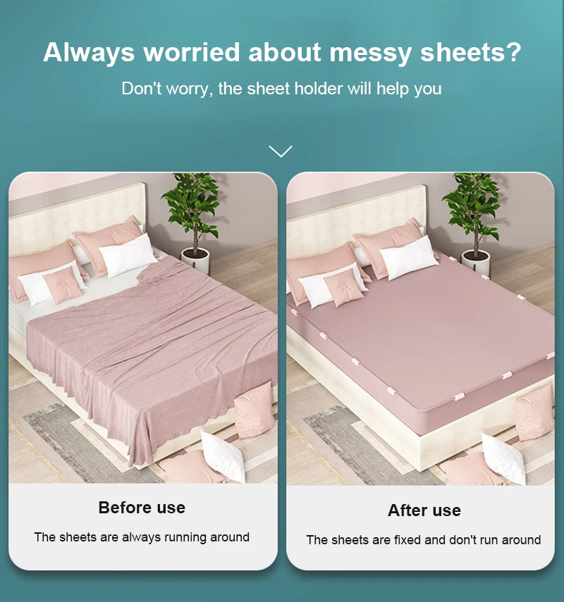 Clean and tidy: Never worry about messy or wrinkled sheets again! This sheet clip can accommodate different types of sheets and hold them firmly, as clean and tidy as new.