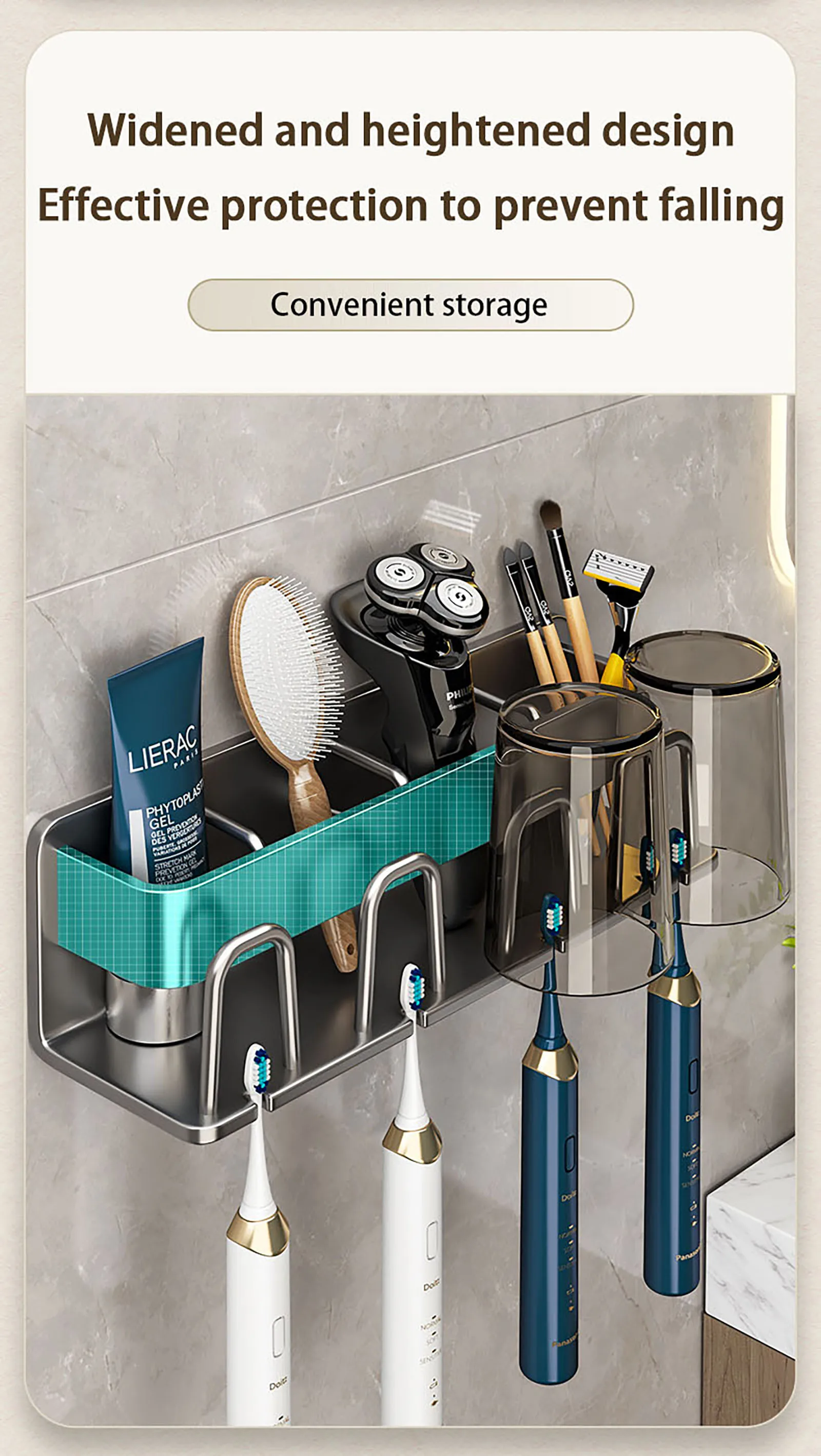 Aluminum Punch Free Wall Mounted Electric Toothbrush Holder Toothpaste Cup Storage Hook Bathroom Accessories Organizer Hot Sale 4