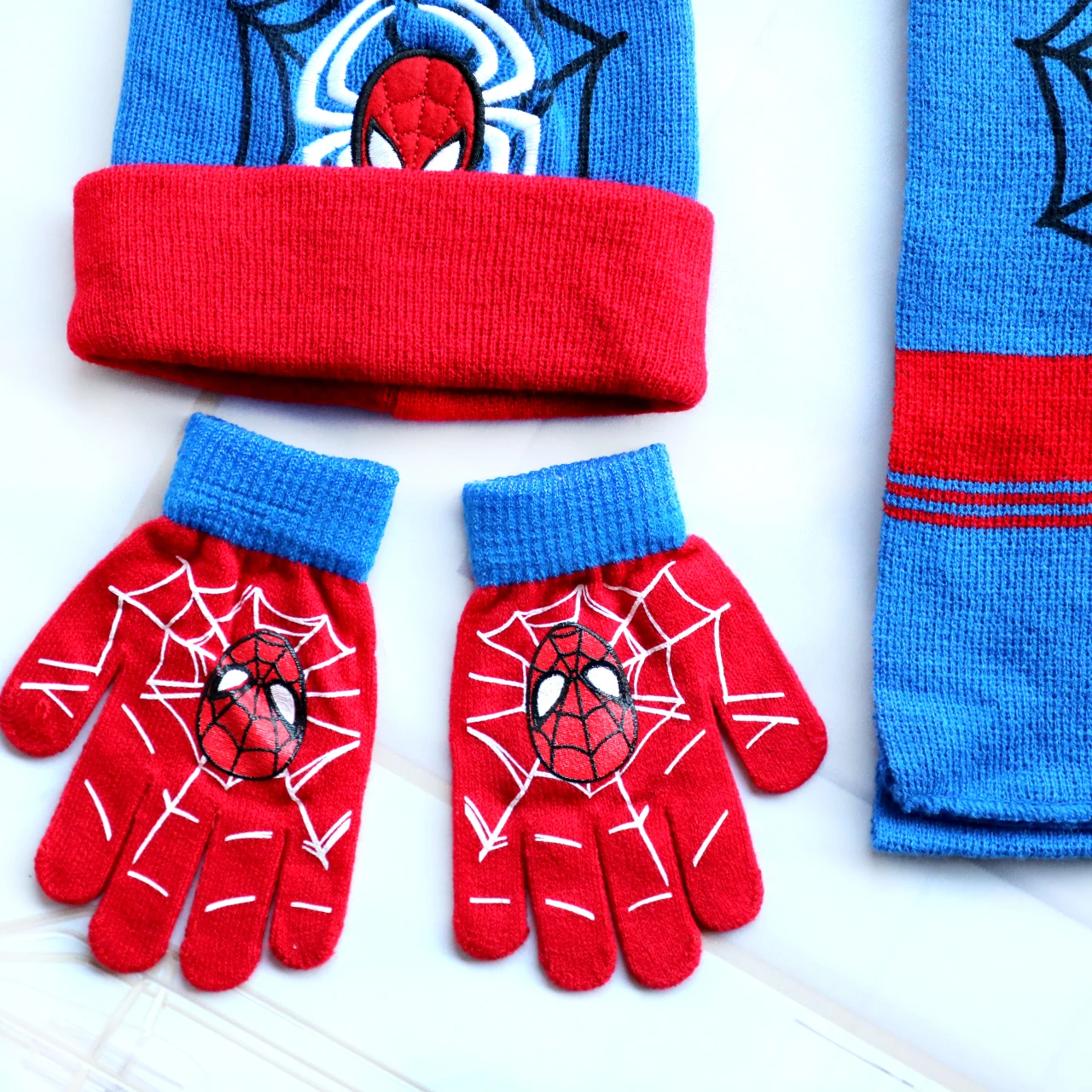 Autumn Winter Children Hat SpiderMan Classics Cartoon Scarf Hat Glove Warm knitted hat Boy Girl Cap Child Christmas Hat