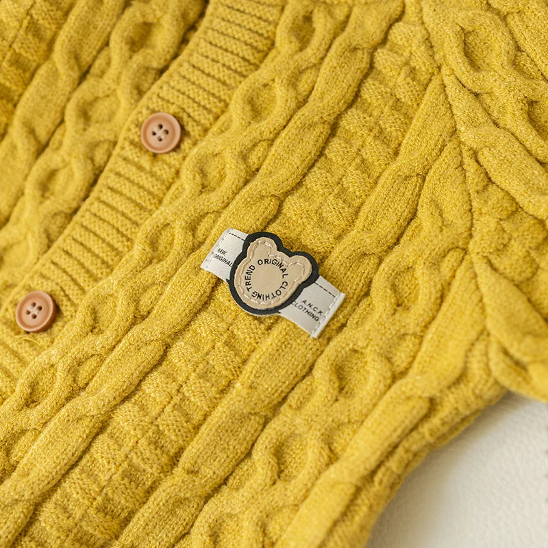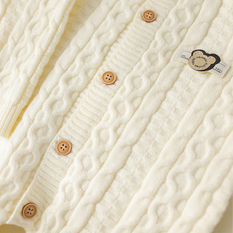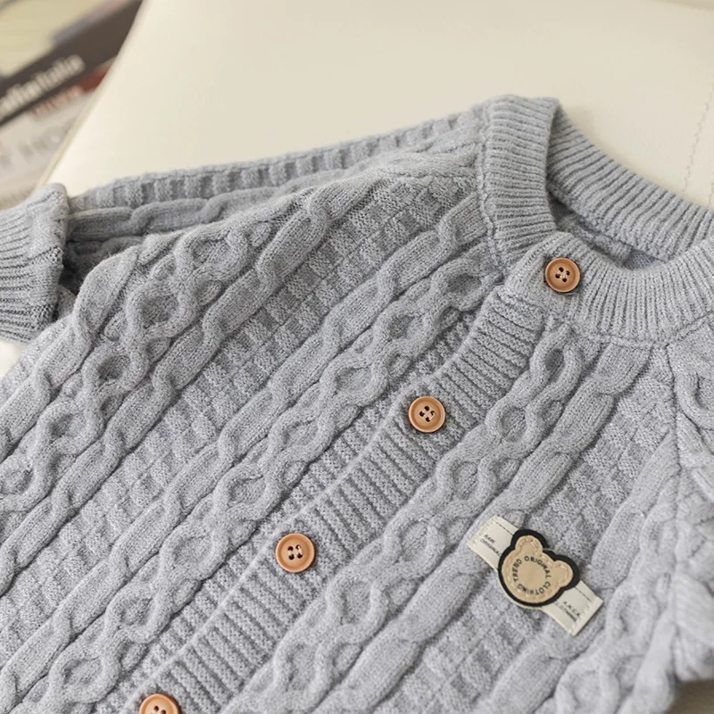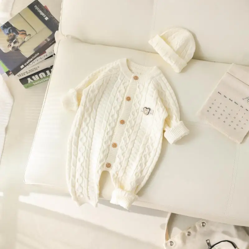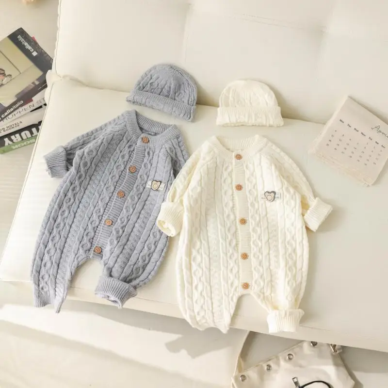 Autumn Winter Clothes Newborn Knitted Cardigan Solid Romper Girl Baby Ribbed Knit Jumpsuit Boy Infant Thick Fashion One-pieceb