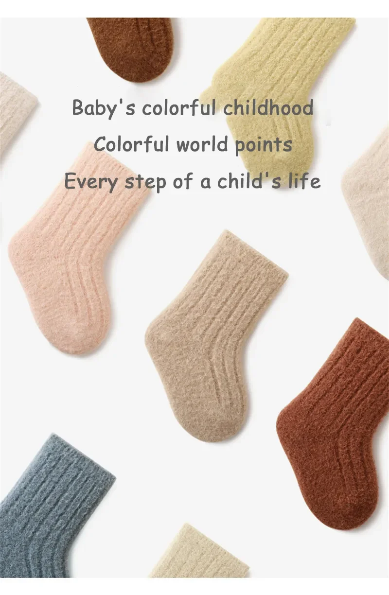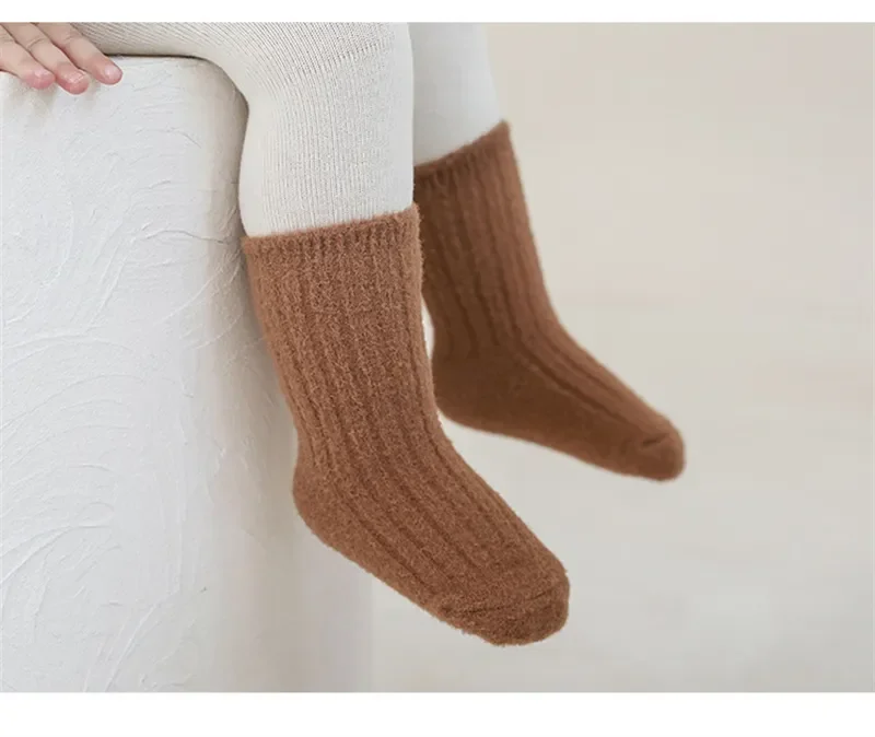 Autumn Winter New Baby Socks Thicken Velvet  Terry Newborn Boy Girl Warm Stockings Solid Knitted Infant Children Mid Tube Socken 5
