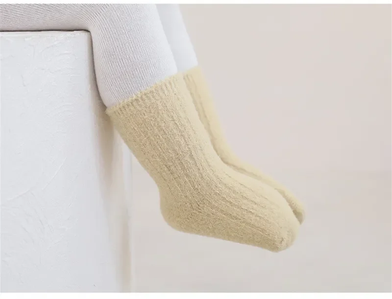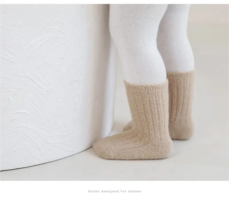 Autumn Winter New Baby Socks Thicken Velvet  Terry Newborn Boy Girl Warm Stockings Solid Knitted Infant Children Mid Tube Socken 4