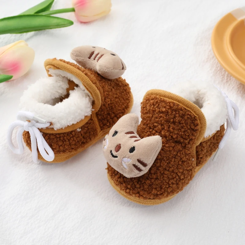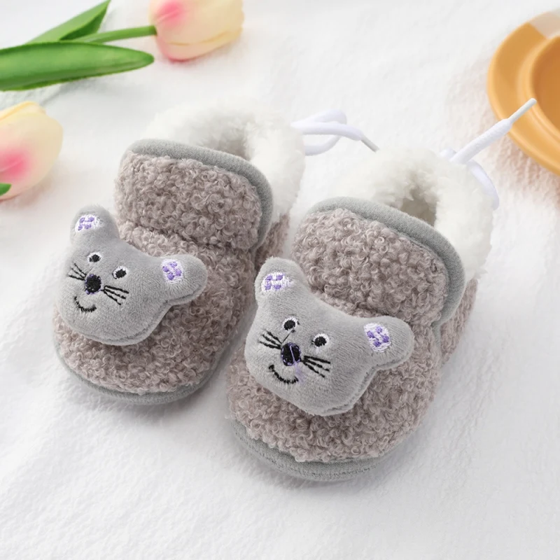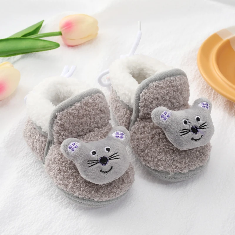 Baby Boots Cartoon Animal Winter Warm Plush Slippers Newborn Cotton Shoes Girls Soft Sole Anti-slip Toddler Indoor Home Shoes