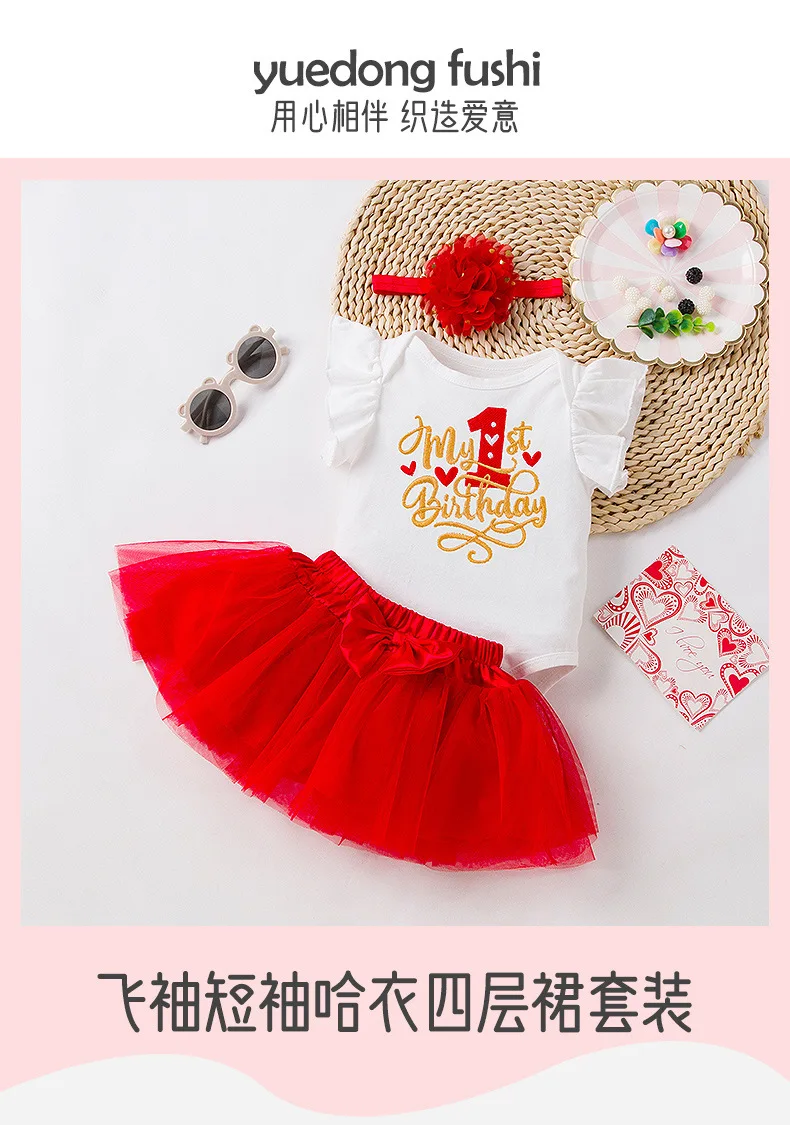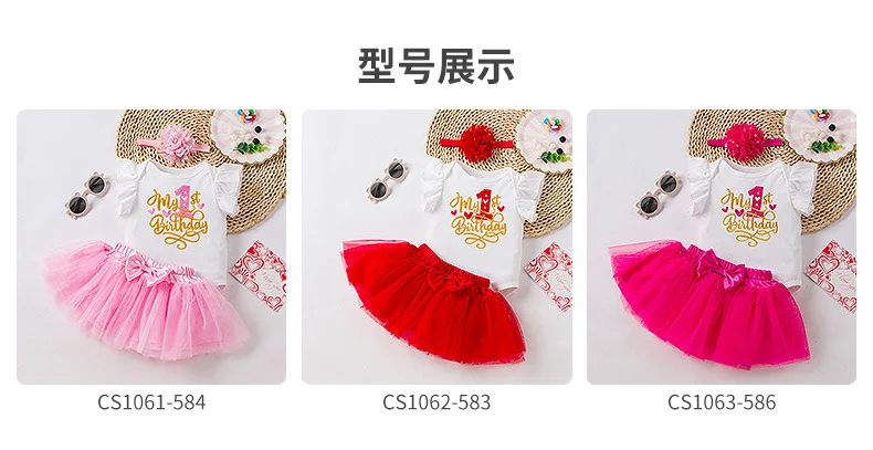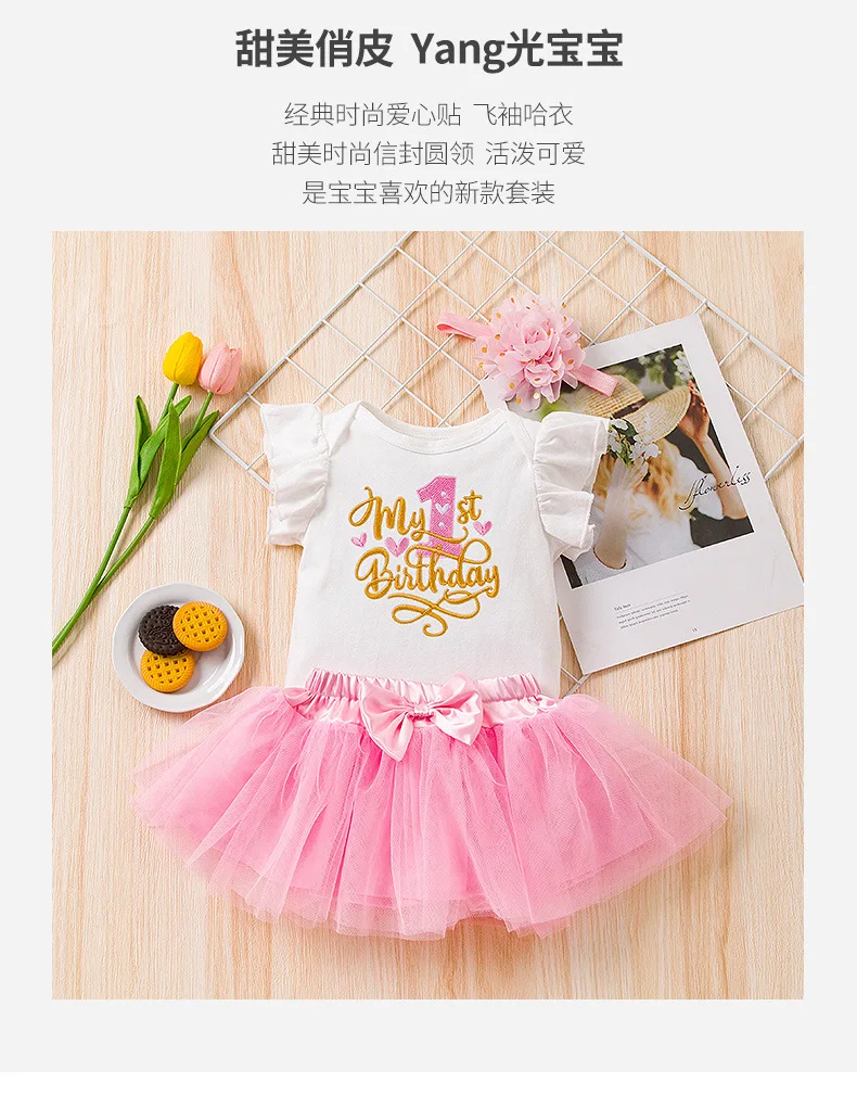 Home Babies & Kids Baby Clothing Baby Dresses Baby Girl Clothes My First Birthday Dress Cute Pink Dresses + Romper Outfits Toddler Girls Summer Clothes Jumpsuit for Party